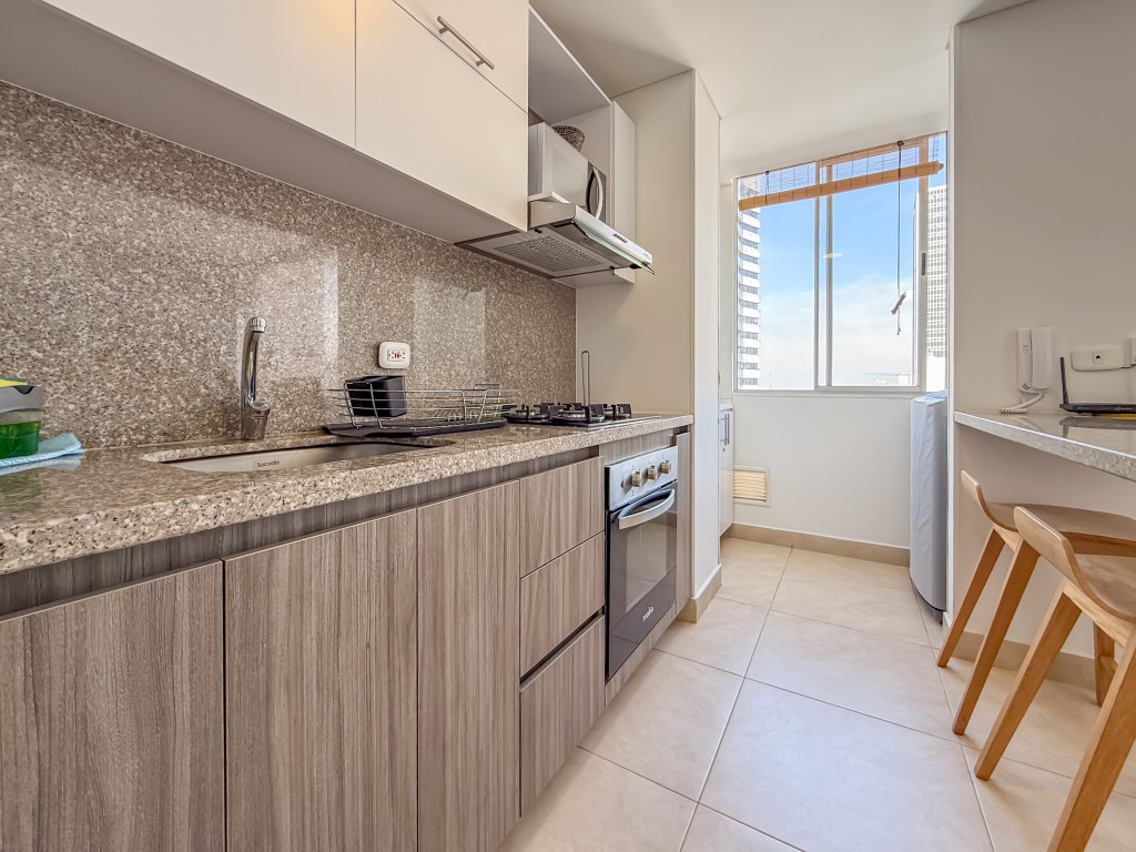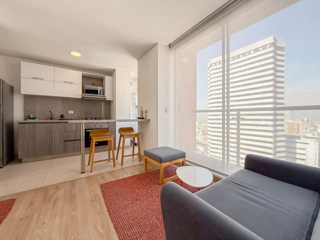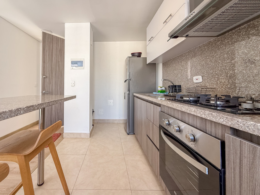Descubre este acogedor apartaestudio amoblado en una zona residencial tranquila. Con 1 habitación, 1 baño y cocina tipo americano equipada con cocina a gas. Disfruta de la iluminación natural y el piso laminado que brindan calidez al ambiente. El conjunto cerrado ofrece seguridad con vigilancia privada 24/7, gimnasio y zona de BBQ. Además, cuenta con parqueadero, portería, citófono y acceso a terrazas. Ubicado cerca de transporte público, supermercados, parques y colegios. ¡Tu nuevo hogar te espera!