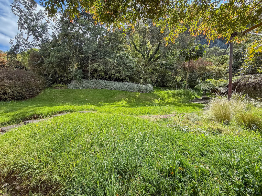 En la parte posterior, un encantador jardín privado con mesa en piedra ofrece un espacio natural y acogedor.