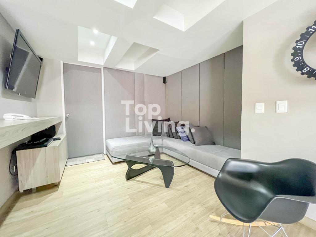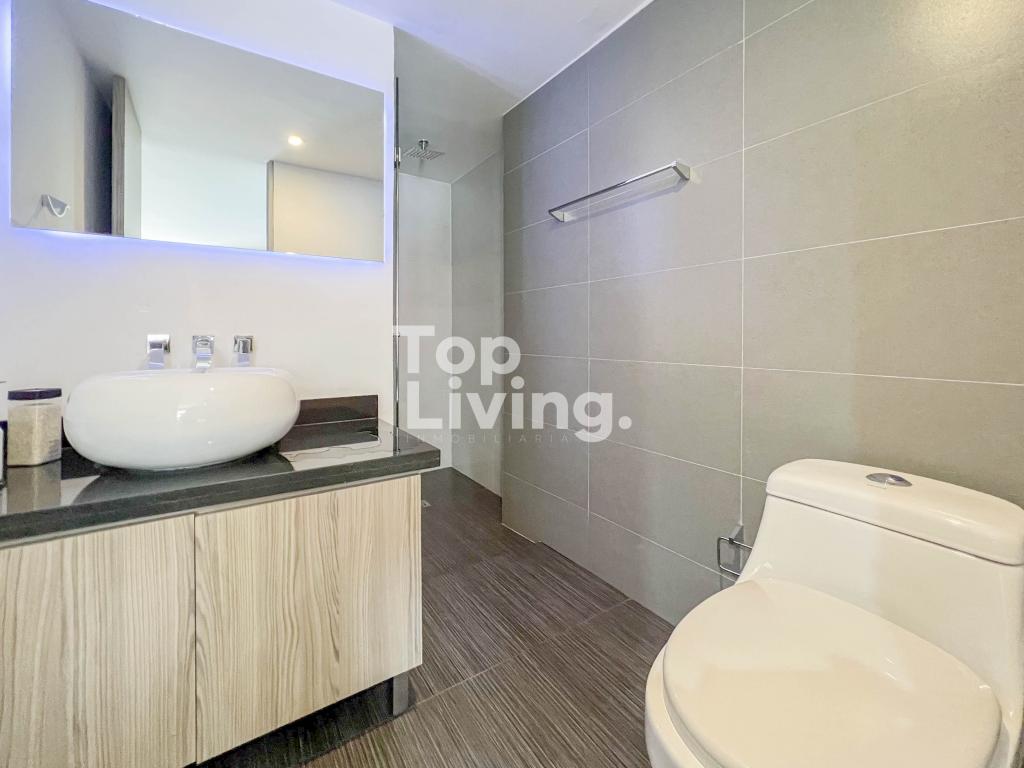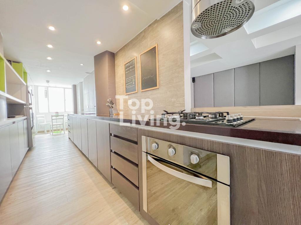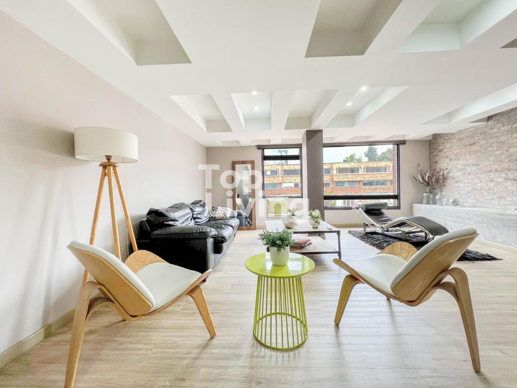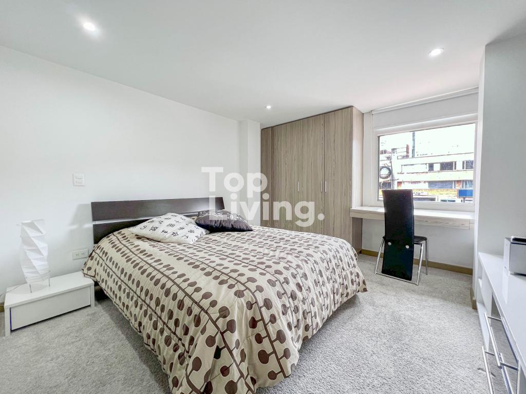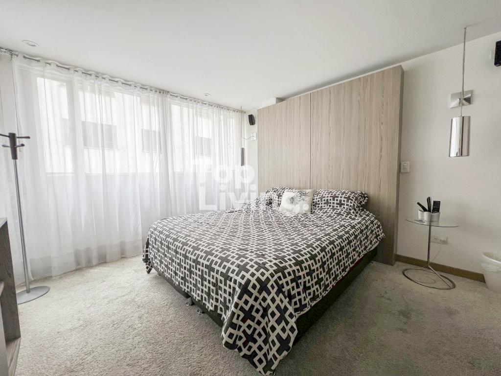 Apartamento amoblado para arriendo en Chicó. Al ingresar a esta propiedad encontramos espacios integrados de forma armoniosa, la sala y comedor en un solo espacio con chimenea a gas que se integran con un espacio adicional con un cómodo sofá y tv. La cocina es tipo americana, moderna y funcional con comedor auxiliar. Cuenta con zona de ropas independiente. La habitación principal tiene una salita auxiliar, un gran vestier y baño en suite; la segunda habitación con closet y baño en suite. El apartamento esta completamente equipado. En la zona hay restaurantes, supermercado, panadería y comercio en general.