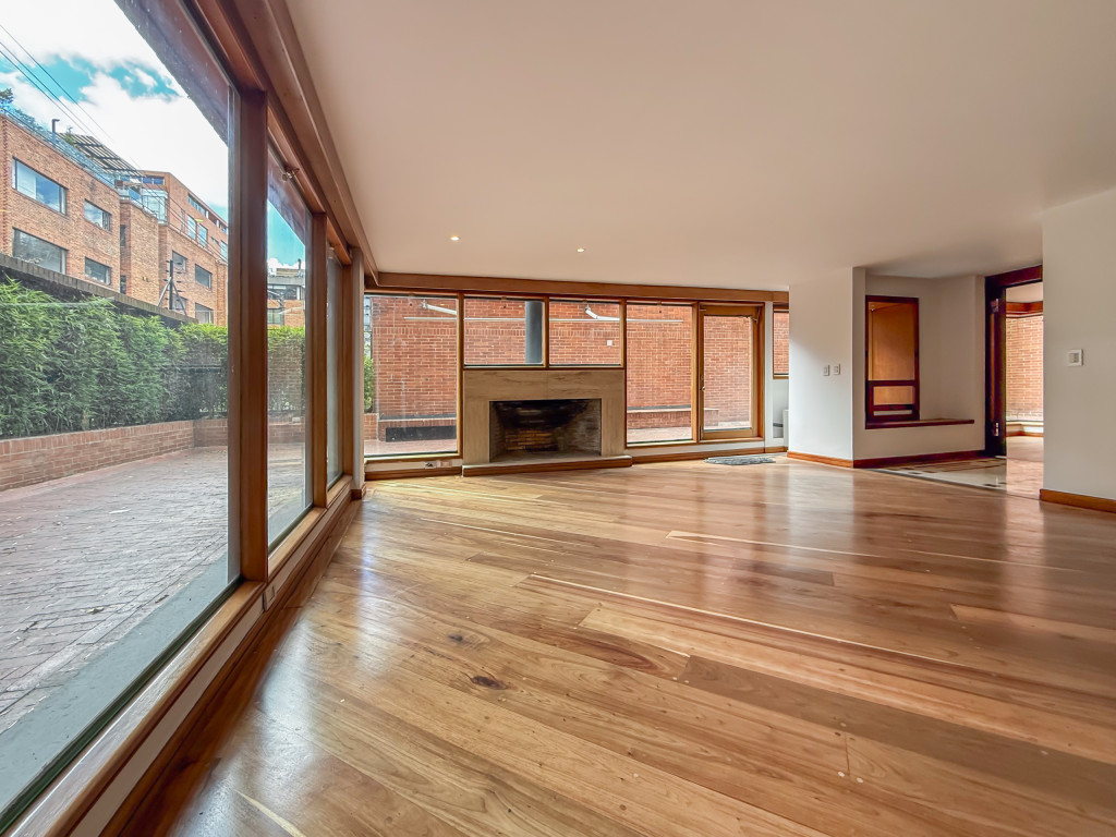 Espectacular Townhouse dúplex con terraza es un oasis en pleno Chicó. Disponible para renta con 350 m² interiores y 110 m² de terraza soleada, ofrece la sensación de vivir en el campo, rodeado de luz natural y calidez. Ideal para familias con niños, cuenta con 3 habitaciones (principal con vestier, jacuzzi y doble ducha), estudio con entrada independiente, sala con chimenea, biblioteca, comedor independiente, family room, cuarto y baño de servicio, además de 3 garajes y un depósito.