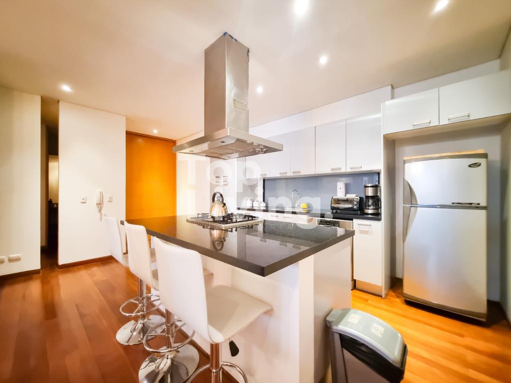 Apartamento de una habitacion, completamente equipado y amoblado en el corazon de la cabrera. Con un amplio area social con balcon y chimenea de leña. Cocina americana completamente equipada. Cuenta con un baño social y zona de lavado independiente. La habitacion es muy grande y con walking closet y baño en suite. Se complementa con dos parqueaderos independientes. El valor del arriendo incluye internet.