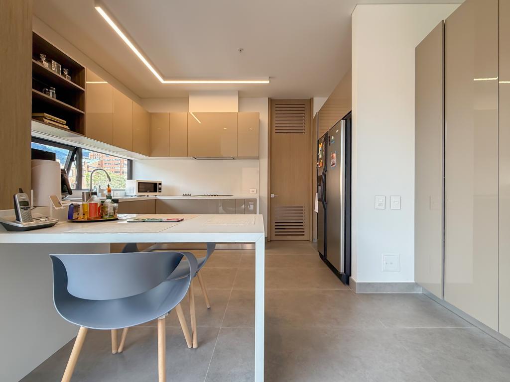 Increible apartamento para arriendo. Ingresamos a esta propiedad por un ascensor privado que nos lleva a la zona social compuesta de grandes ventanales, vista y mucha luz que se complementa con un agradable balcón grande con BBQ. La cocina es tipo americana y tiene panales que permite independizarla, es amplia, con vista a los cerros, equipada y con comedor auxiliar. Cuenta con zona de ropas independiente, cuarto y baño de servicio. El área privada tenemos la habitación principal con un walking closet, un gran baño con tina, doble ducha y un gran closet; en la segunda habitación tenemos un closet y baño en suite y da la posibilidad de hacer una tercera alcoba. Este apartamento tiene 3 parqueaderos independientes y depósito. Edificio con piscina, salon de juego para adultos, salon comunal equipado con una super sala, gimnasio, zona infantil y una gran terraza con 3 zonas para BBQ.