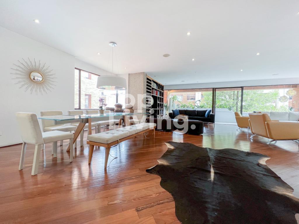 Hermoso apartamento para arriendo en Rosales. Al ingresar encontramos una amplia zona social con gran ambiente, chimenea e iluminación, cuenta con dos salas y un comedor amplio, desde esta zona accedemos a una terraza. la cocina es americana, amplia, moderna y funcional. Tiene un estudio con baño en suite y adicional el baño social. En la zona privada encontramos tres habitaciones, la principal con balcón, luz, vestier y baño en suite; la segunda y tercera habitación con closet, acceso al balcón y comparten un baño. este apartamento tienen deposito y dos parqueaderos.
