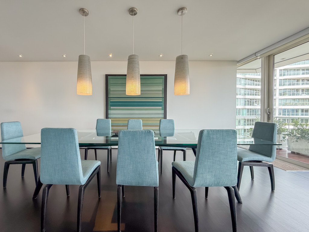 Al ingresar por el ascenso privado encontramos una amplia sala comedor con cocina independiente y un estudio.