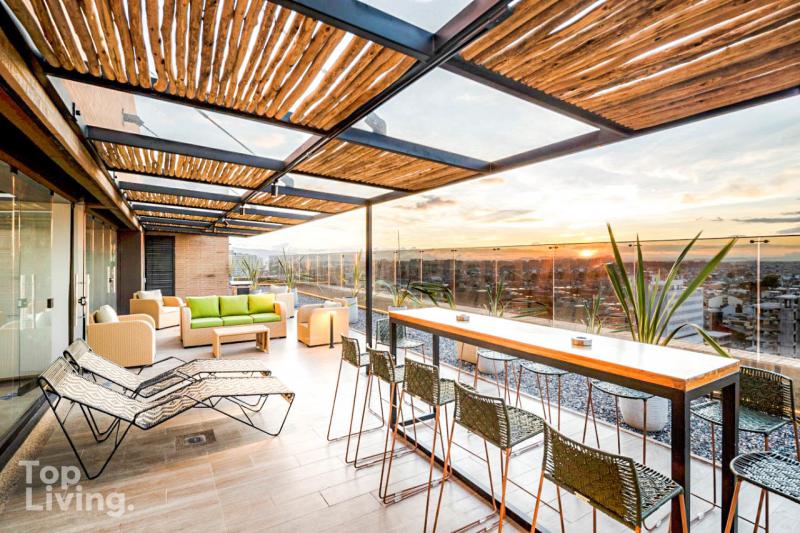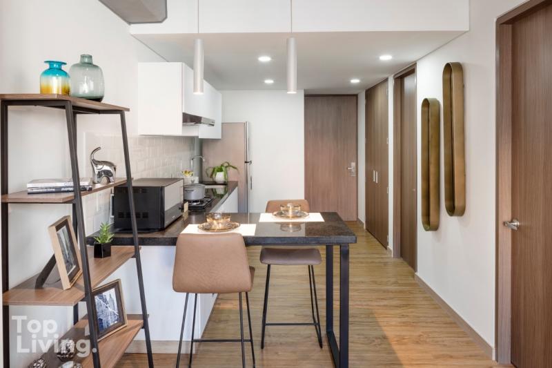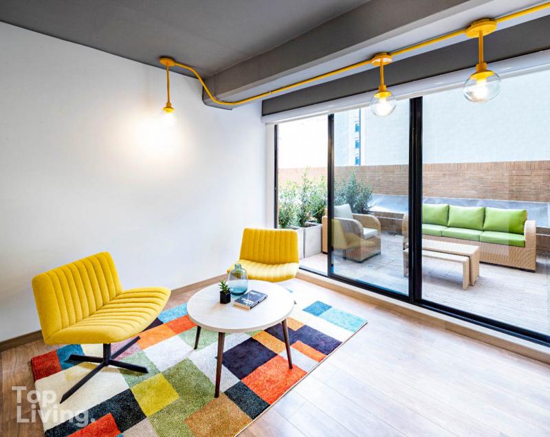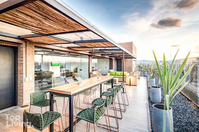 Moderno apartamento a estrenar muy bien ubicado de dos alcobas, con una zona social amplia y con buena iluminación natural. Cuenta con una cocina tipo americana totalmente equipada integrada a la sala y una zona de ropas con lavadora-secadora incluída. La alcoba principal de buen tamaño y mucha iluminación tiene un closets empotrados y un baño en suite. La segunda alcoba también con closets empotrados y baño en suite. El apartamento se puede arrendar amoblado o no, y ya incluye solar screen y blackouts. Con posibilidad de arrendar parqueaderos y depósito si es necesario. El edificio cuenta con zonas de coworking, terraza en la cubierta con zona de BBQ, Salones de Juegos, Sala de Estudio, un Spa para Mascotas, Bicicleteros, y Lavandería.