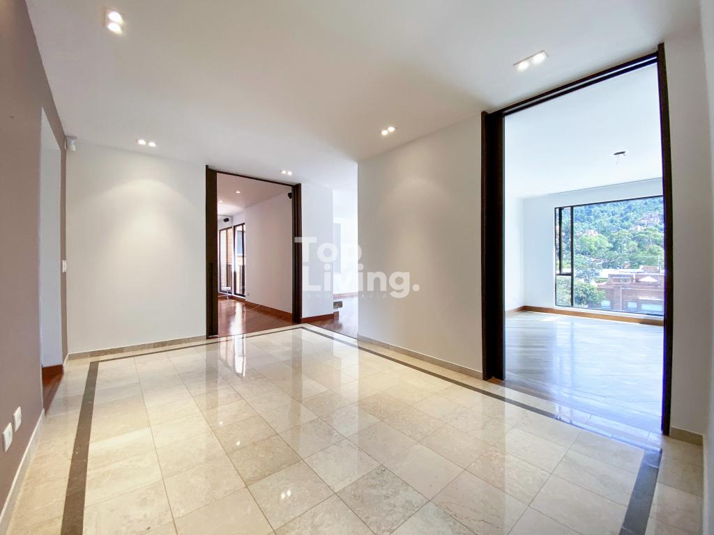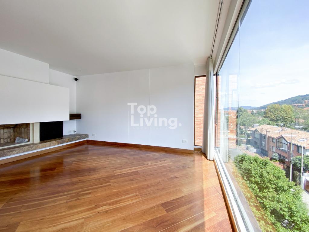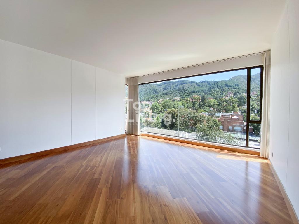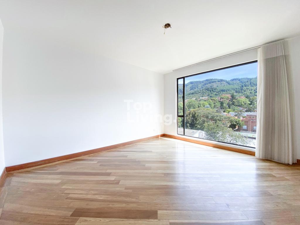 Espectacular apartamento para arriendo con excelente vista en Santa Ana. Ingresamos por un gran hall muy iluminado que nos lleva a amplias áreas funcionales e independientes. La sala es grande e iluminada con chimenea tradicional. El comedor es de gran tamaño con cocina tipo americana, con excelentes acabados, luz y ventilación natural. Cuenta con zona de lavandería independiente, cuarto y baño de servicio. Todas las zonas sociales cuentan con vista privilegiada a los cerros orientales. En el área privada nos recibe un gran family room que nos da acceso a 4 habitaciones, la habitación principal con baño en suite y vestier, la segunda habitación con closet y baño en suite, la tercera y cuarta habitación con closet y baño compartido. El apartamento cuenta con 3 parqueaderos, dos en línea, uno independiente y un depósito.