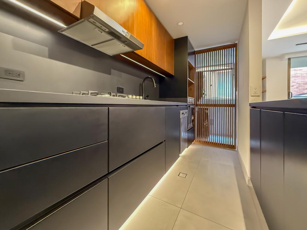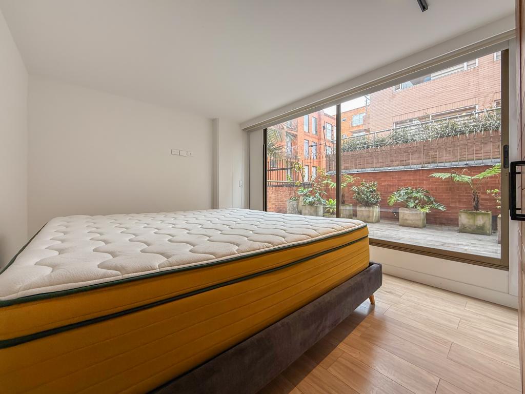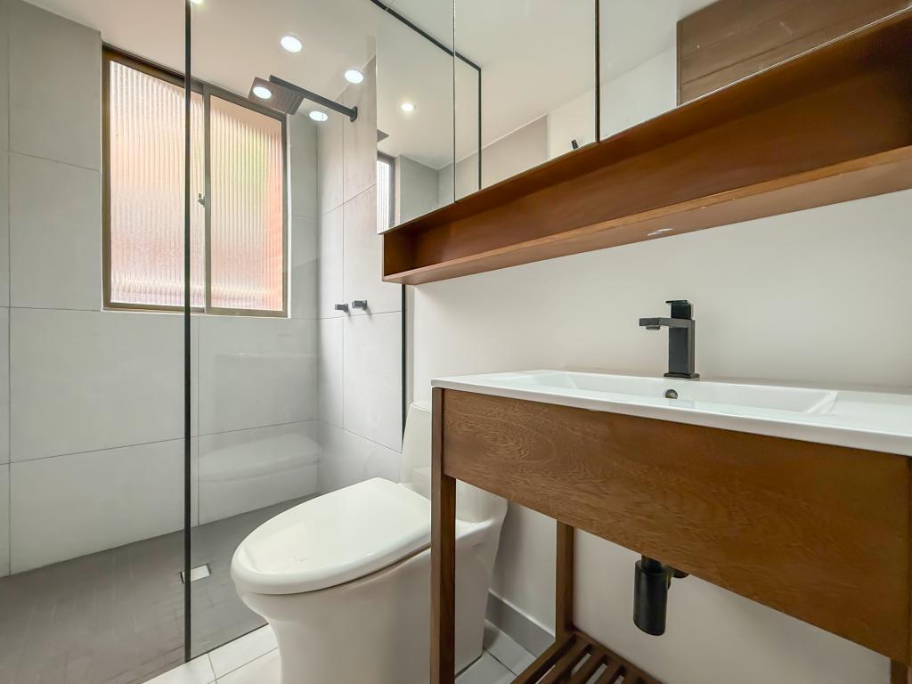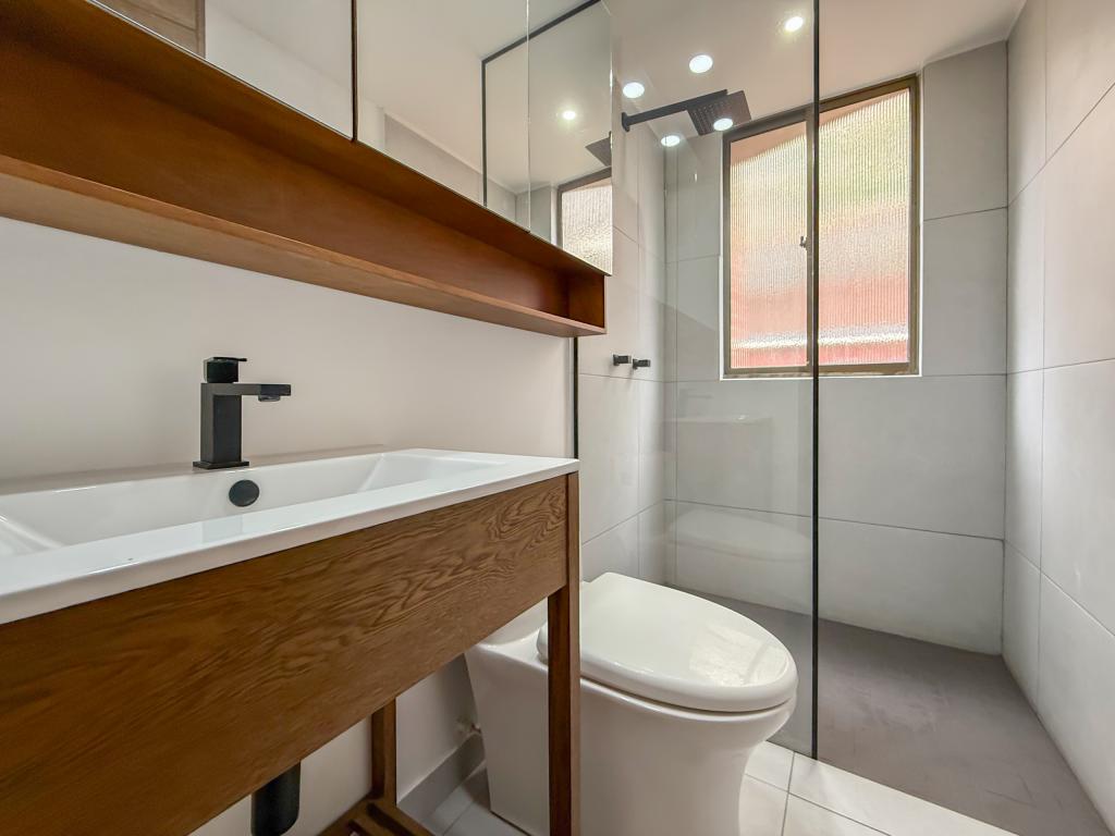 Apartamento con terraza para arriendo en Santa Bibiana. Al ingresar encontramos una super zona social con sala y comedor en un ambiente, acceso a la terraza de 30 mts y una cocina tipo americana moderna y funcional; cuenta con zona de ropas independiente. Esta propiedad tiene dos habitaciones que tienen acceso a la terraza, la principal con baño en suite y vestier, la segunda habitación con closet y baño. El apartamento cuenta con dos parqueaderos en linea y un deposito.