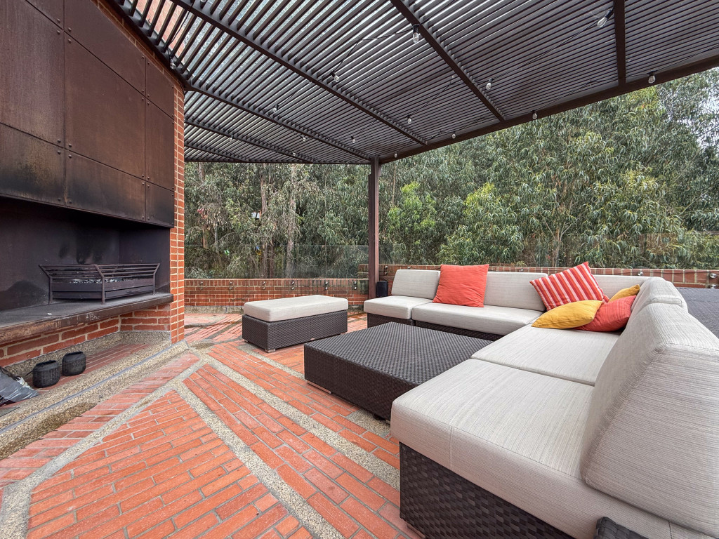 La zona social es amplia y acogedora, con sala, comedor y acceso directo a una gran terraza con zona de BBQ y sala exterior. En el segundo nivel, una terraza adicional permite apreciar la vista y el entorno natural del conjunto.