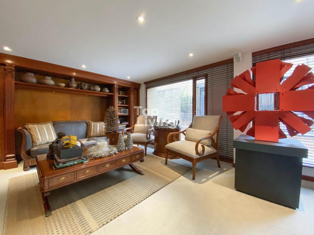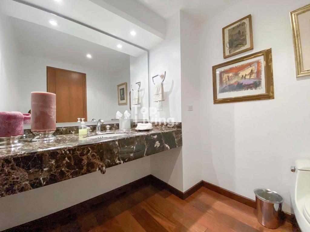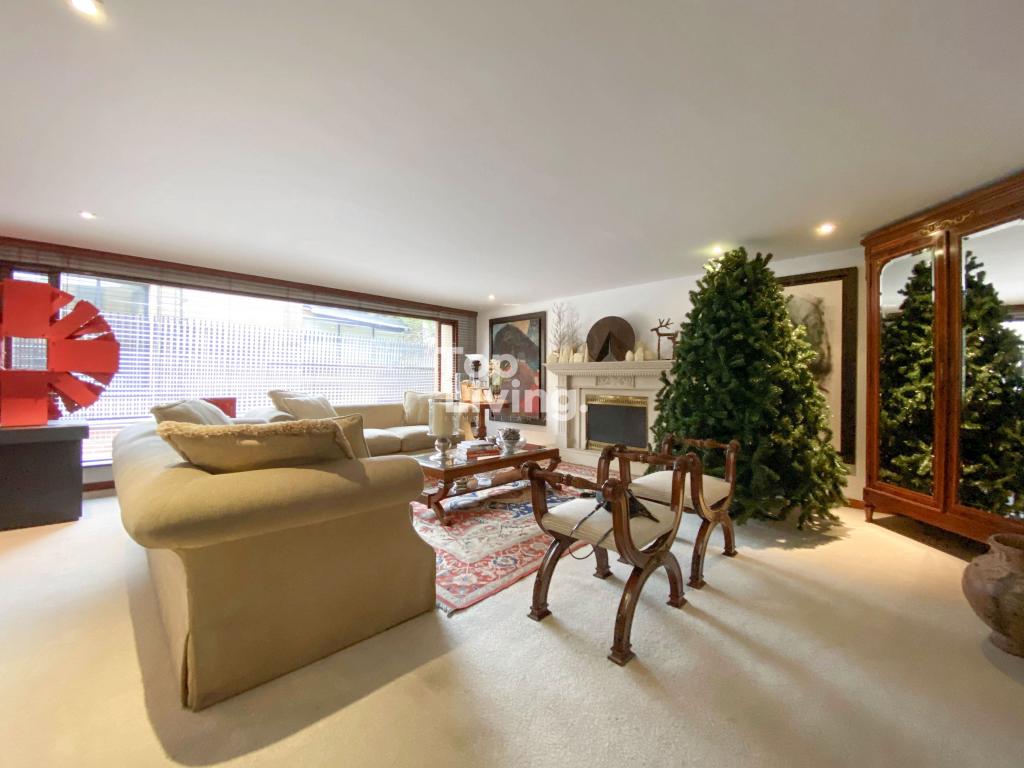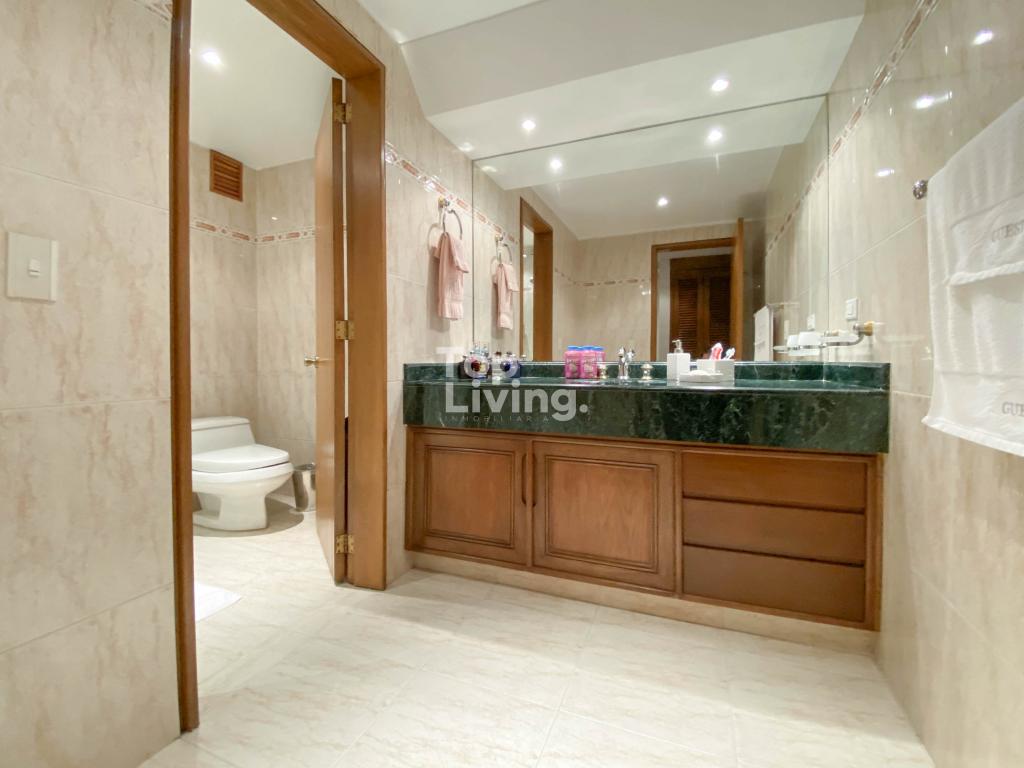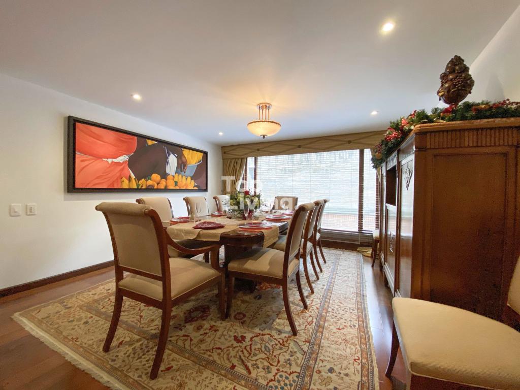 Apartamento con terraza para venta y arriendo en Chicó Oriental. Ingresamos por un hall que nos lleva a una amplia zona social que consta de sala y comedor independientes y una gran terraza muy iluminada. La cocina es integral, moderna e iluminada. Esta zona cuenta con cuarto y baño de servicio. En la zona privada encontrarás cuatro habitaciones, la habitación principal amplia, con vestier y baño en suite y las otras tres con baño privado. Lo complementan dos parqueaderos en línea y un depósito.