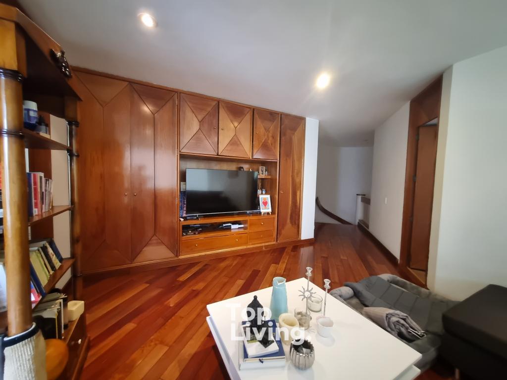 En la mejor zona de rosales, rodeado de naturaleza, encontramos este apartamento duplex de 200 mt. Accedemos al area social, con comedor independiente y chimenea de leña. Aqui encontramos el baño social y la amplia cocina cerrada, con CBS y espaciosa zona de lavado. En la planta superior encontramos un family o hall de alcobas y las tres habitaciones, cada una con su baño privado y la principal con walking closet. Se complementa con dos parqueaderos independientes y un deposito