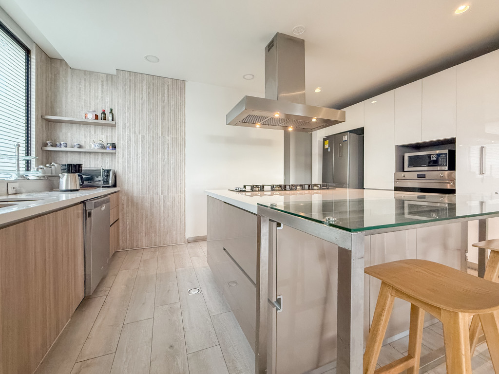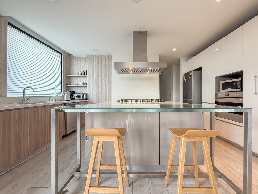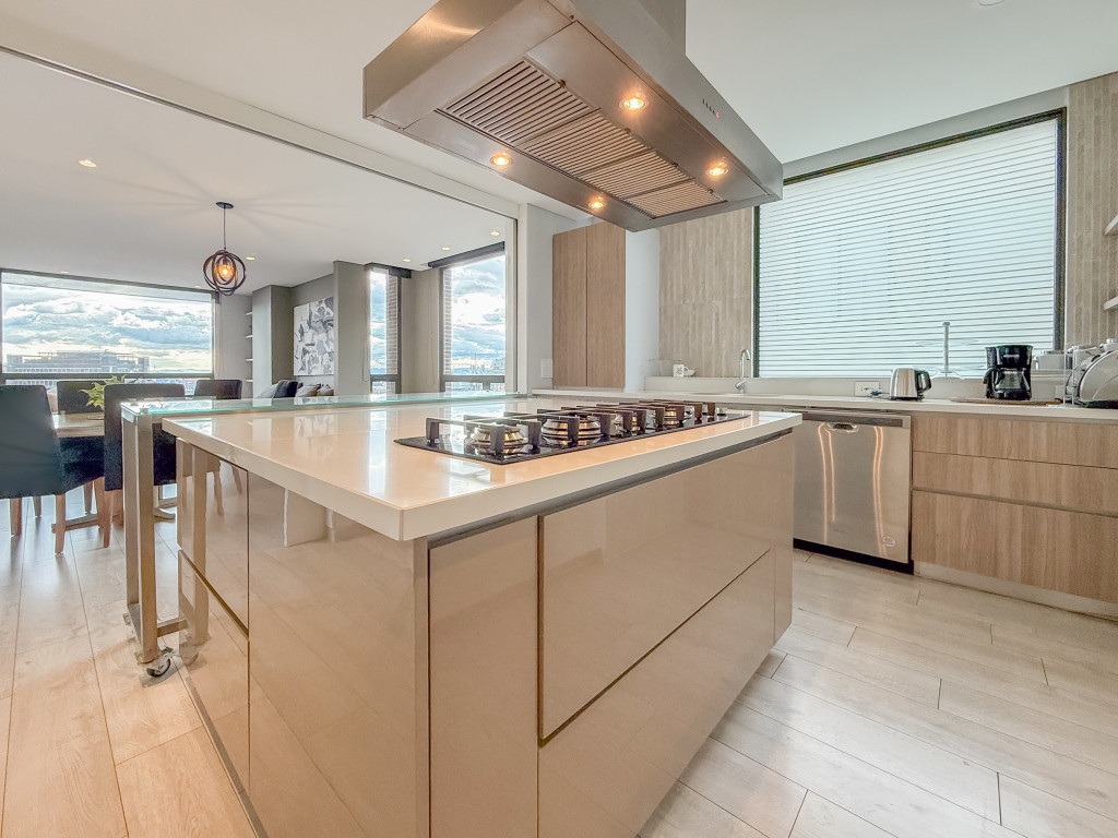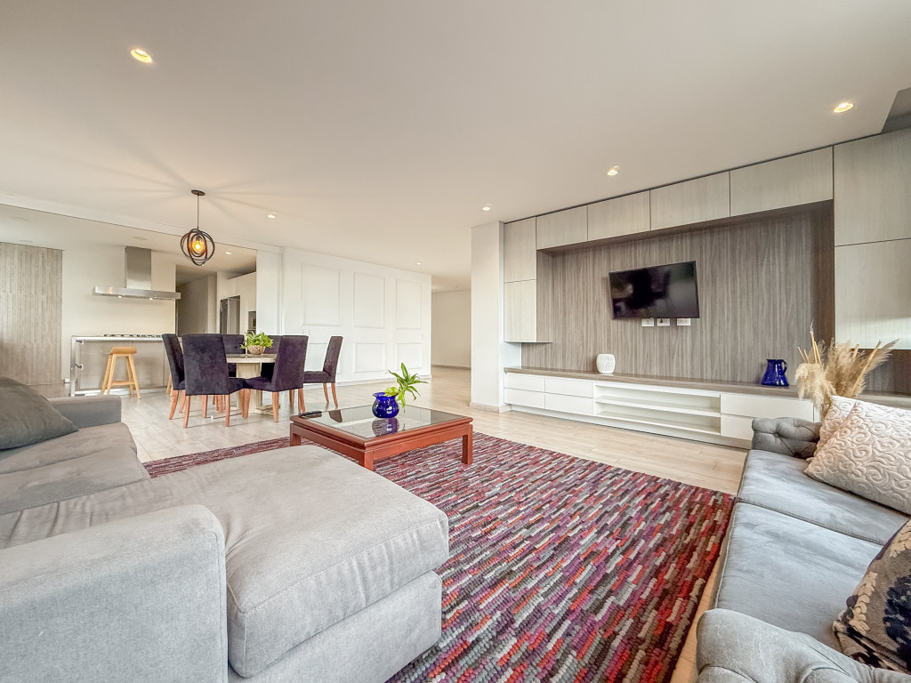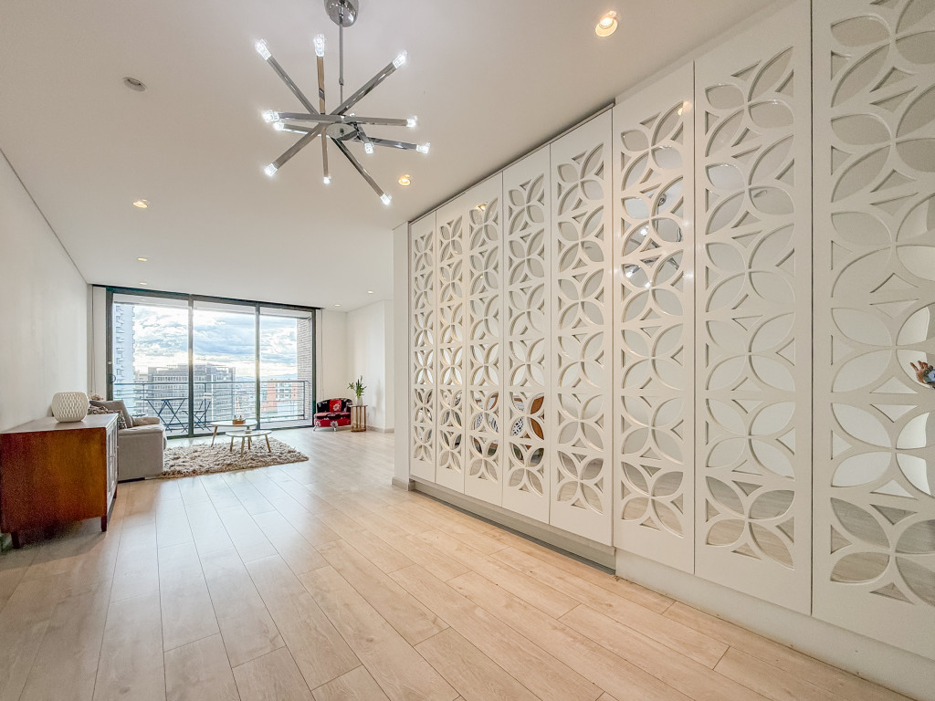 Hermoso apartamento AMOBLADO con club house. Al ingresar por el ascensor privado encontramos una amplio espacio de sala comedor con salida a un balcón, seguidamente tenemos una hermosa cocina abierta o también la pueden independizar con su puerta corrediza.