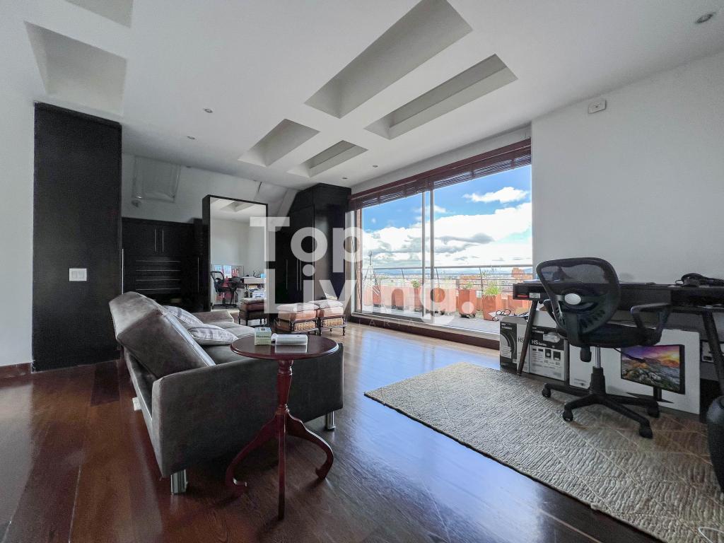 Espectacular PH para arriendo y venta en Rosales. Al ingresar encontramos un área amplia e iluminada, la zona social con sala-comedor en un solo espacio es de gran tamaño, con ventanales de piso a techo y mucha luz que se complementa con una espectacular vista. La cocina es tipo americana, moderna y funcional. Cuenta con cuarto, baño de servicio y zona de lavandería. En este primer piso tenemos el baño social. En el segundo piso encontramos un hall que nos lleva a dos habitaciones; la habitación principal con gran espacio, una sala, baño en suite, Vestier y dos terrazas. La segunda habitación con acceso a la terraza también, closet y baño. El apartamento cuenta con dos parqueaderos, gimnasio, salón de conductores, jaula de golf y parque de niños.
