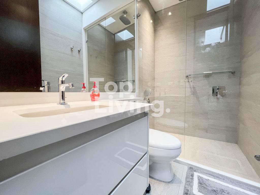 Espectacular apartamento duplex para la venta en Rosales. Ingresamos por un ascensor privado directamene a la propiedad que nos recibe con grandes ventanales de piso a techo, mucha luz, vista a la ciudad y acceso a la super terraza; a la izquierda encontramos la sala de gran tamaño con vista y muebles empotrados con bar, continuamos y tenemos un super family perfecto para compartir con amigos. A la derecha esta el comedor independiente donde pueden organizarse perfectamente mas de 12 comensales. La cocina es integral, moderna y funcional, cuenta con electrodomestidos de alta gama y comedor auxiliar. Tiene baño social, zona de ropas, cuarto y baño de servicio. El segundo nos recibe con otro super family con estudio y baño auxiliar, desde aca se puede acceder a la terraza de este piso. Aca tenemos cuatro habitaciones todas con baño en suite y vestier, la habitación principal tiene adicional doble vestier y acceso a la terraza. Cuenta con cuatro parqueaderos y un deposito.