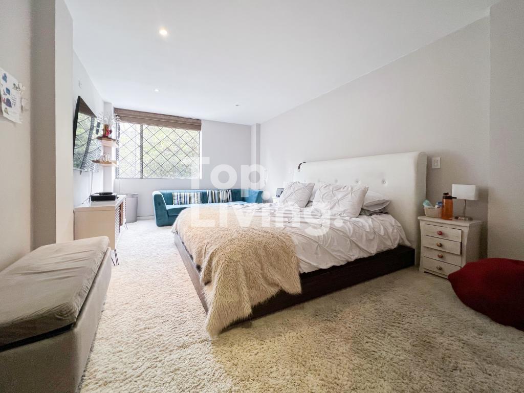 Espectacular apartamento para venta ubicado en La Calleja Alta. Al ingresar encontramos una gran zona social muy iluminada que consta de sala-comedor integrados. La cocina es integral, equipada y de buen tamaño. Esta área cuenta con zona de ropas, cuarto y baño de servicio. En la zona privada tendrás cuatro habitaciones, la principal con walk-in closet y baño en suite, las otras tres habitaciones con closet y dos comparten baño. Podrás disfrutar de una agradable terraza privada. Lo complementan tres parqueaderos y un depósito. Este apartamento esta frente a un parque y mucha tranquilidad. Tiene dos depósitos y un jardin-terrza de 60 mtrs.