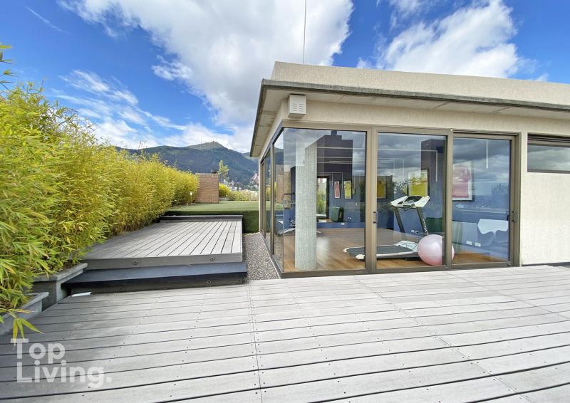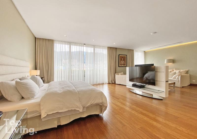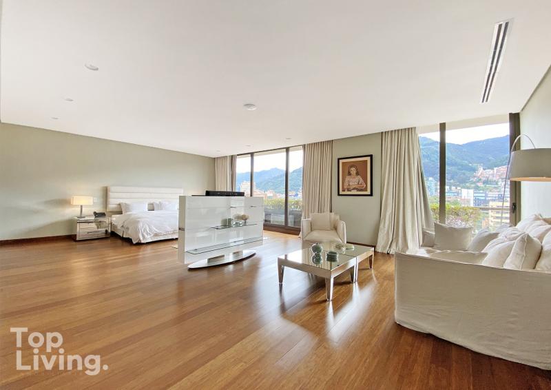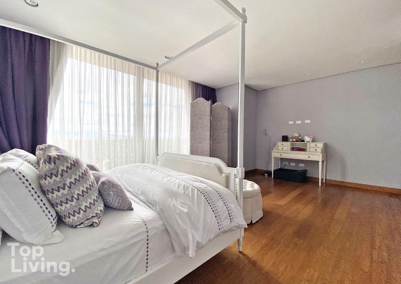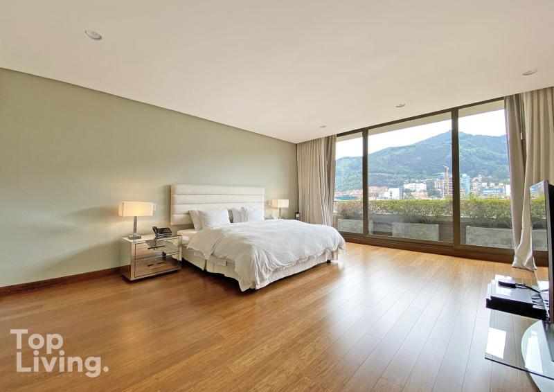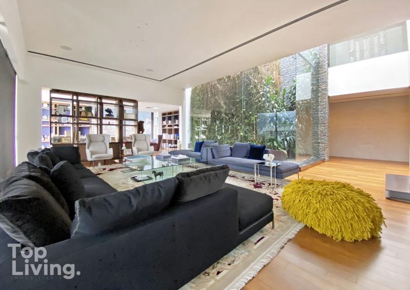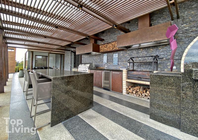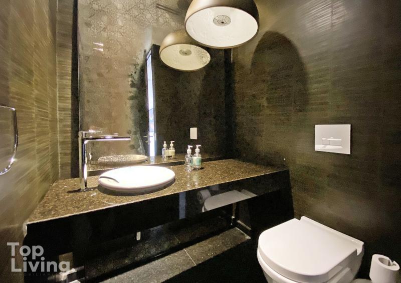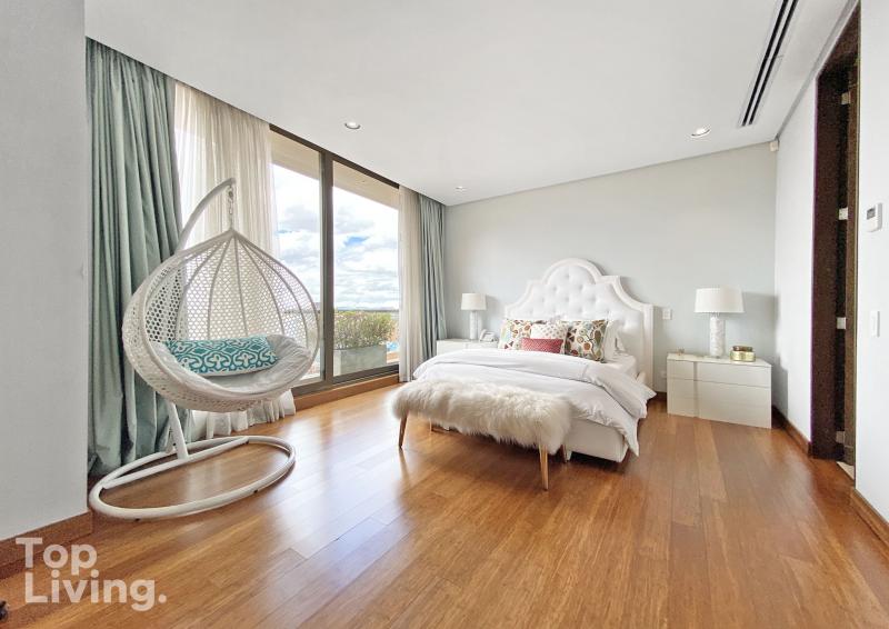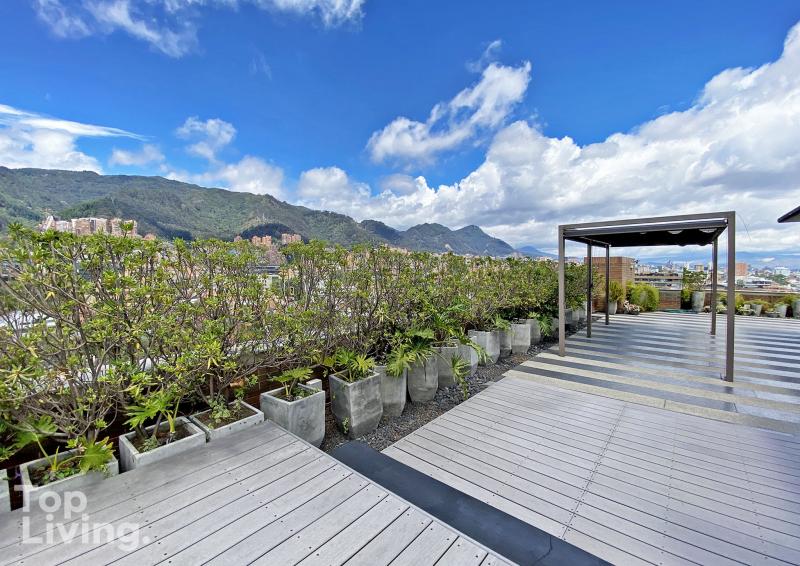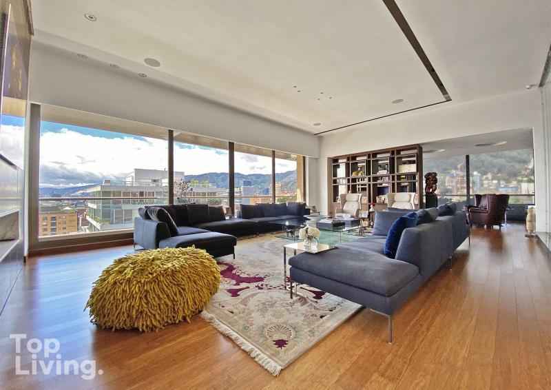 Maravilloso Penthouse con exclusivo diseño y vista 360. Es un apartamento con un área aproximada de 1.550 m2 distribuidos en dos plantas. La planta baja aloja el salón principal con grandes ventanales que disfruta no solo de la vista y luz natural, sino de la presencia de un jardín vertical hidropónico, el comedor con pared flotante y recubierta de láminas de hierro crudo con costuras internas, oficina privada y la zona de servicio. Tiene además un elemento arquitectónico muy importante, un muro de piedra, que organiza los espacios en torno a él tanto horizontal como verticalmente, otorgando la privacidad necesaria en la zona de habitaciones. La planta alta, con terrazas y vista de 360º, presenta los espacios sociales más importantes: Pérgola de BBQ, horno de pizza, sala de juegos infantiles, salón de juegos y TV, gimnasio, habitación de huéspedes y un putting green.