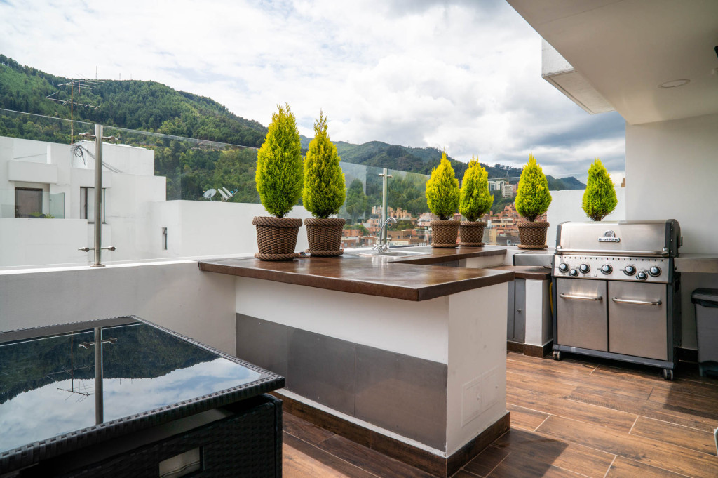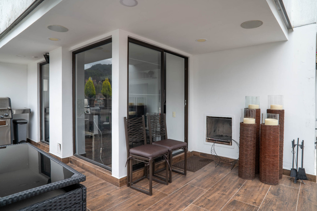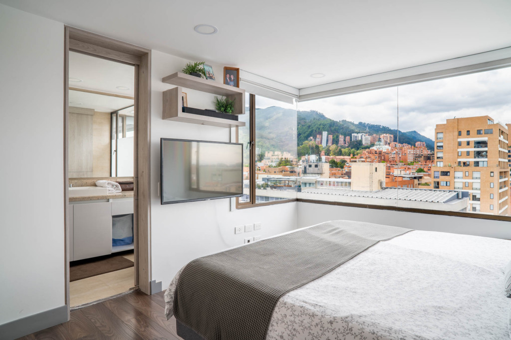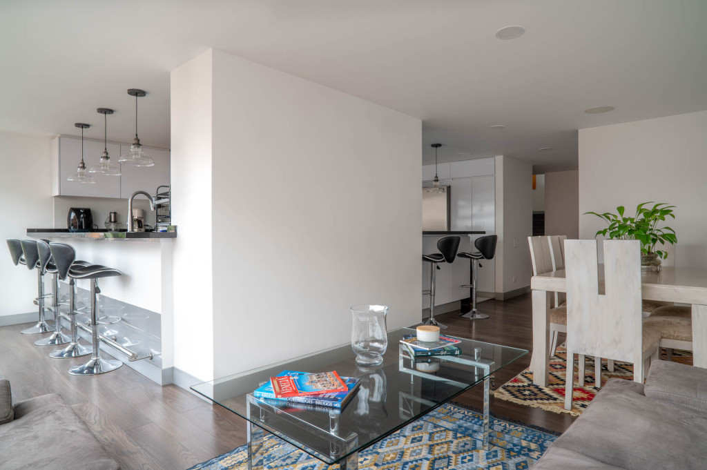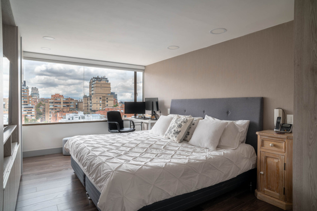 Penthouse de 227.87 m² ubicado en el sector de Chicó Norte. Con vistas 360° a Bogotá, este moderno espacio de tres niveles se destaca por su excelente entrada de luz natural y ambientes amplios. Cuenta con sala, comedor independiente, cocina abierta tipo americana, bar, zona de lavandería, tres habitaciones con baño privado, y una terraza ideal para disfrutar de la vista y el entorno urbano. Sus pisos laminados y su diseño moderno hacen de este hogar un lugar único, cómodo y sofisticado.