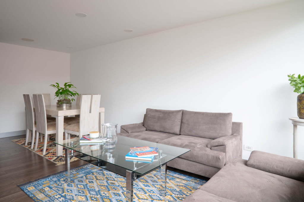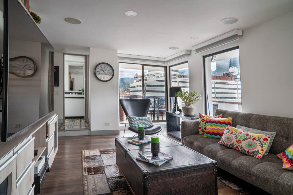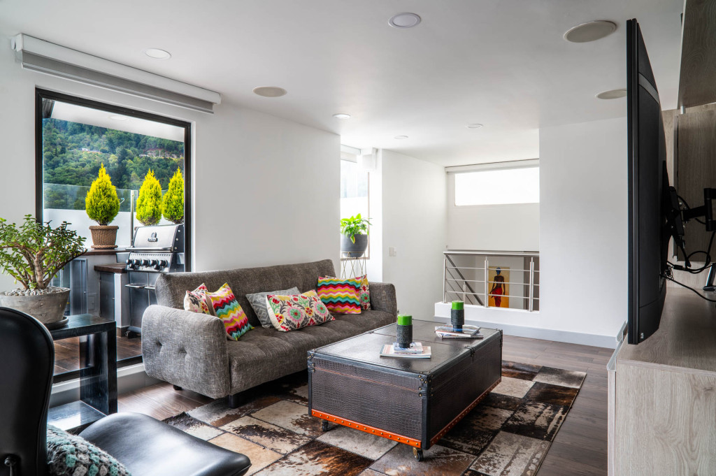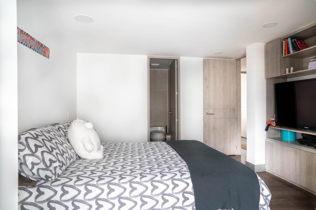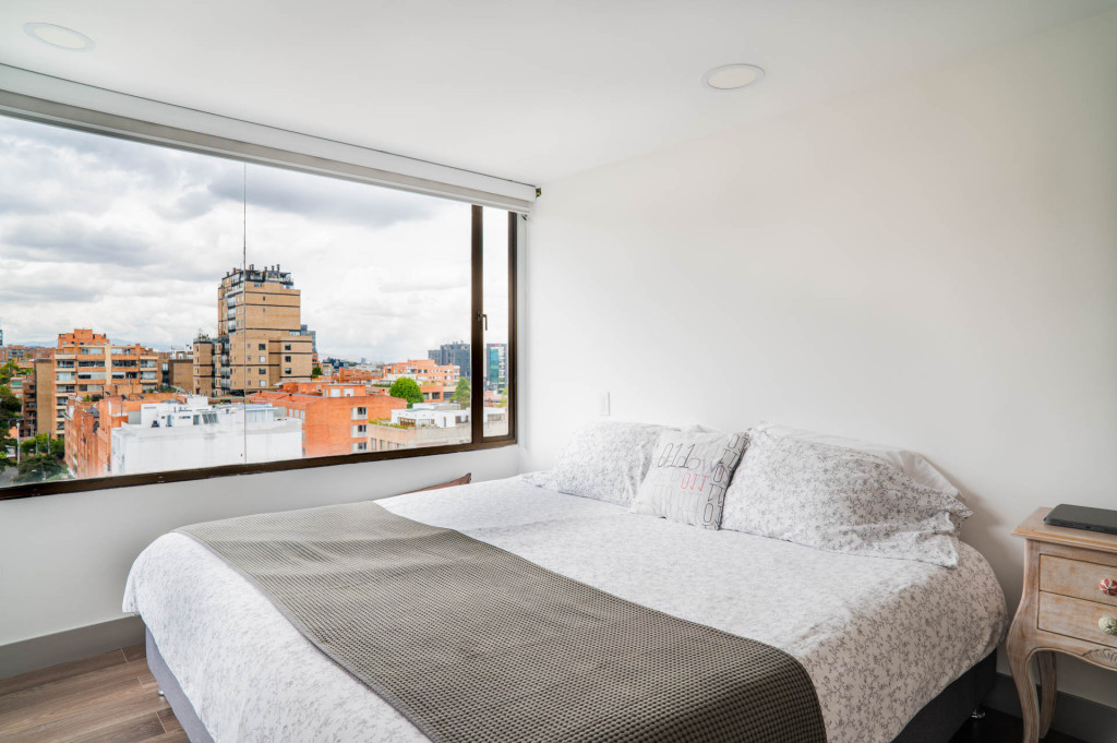 Penthouse de 227.87 m² ubicado en el sector de Chicó Norte. Con vistas 360° a Bogotá, este moderno espacio de tres niveles se destaca por su excelente entrada de luz natural y ambientes amplios. Cuenta con sala, comedor independiente, cocina abierta tipo americana, bar, zona de lavandería, tres habitaciones con baño privado, y una terraza ideal para disfrutar de la vista y el entorno urbano. Sus pisos laminados y su diseño moderno hacen de este hogar un lugar único, cómodo y sofisticado.