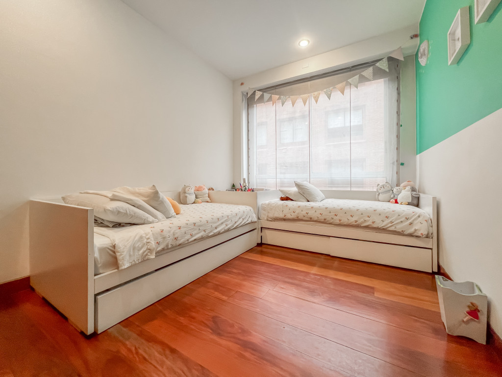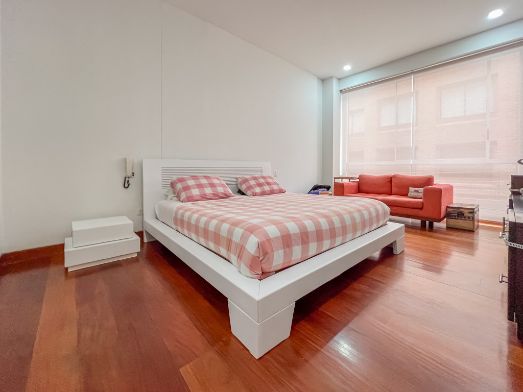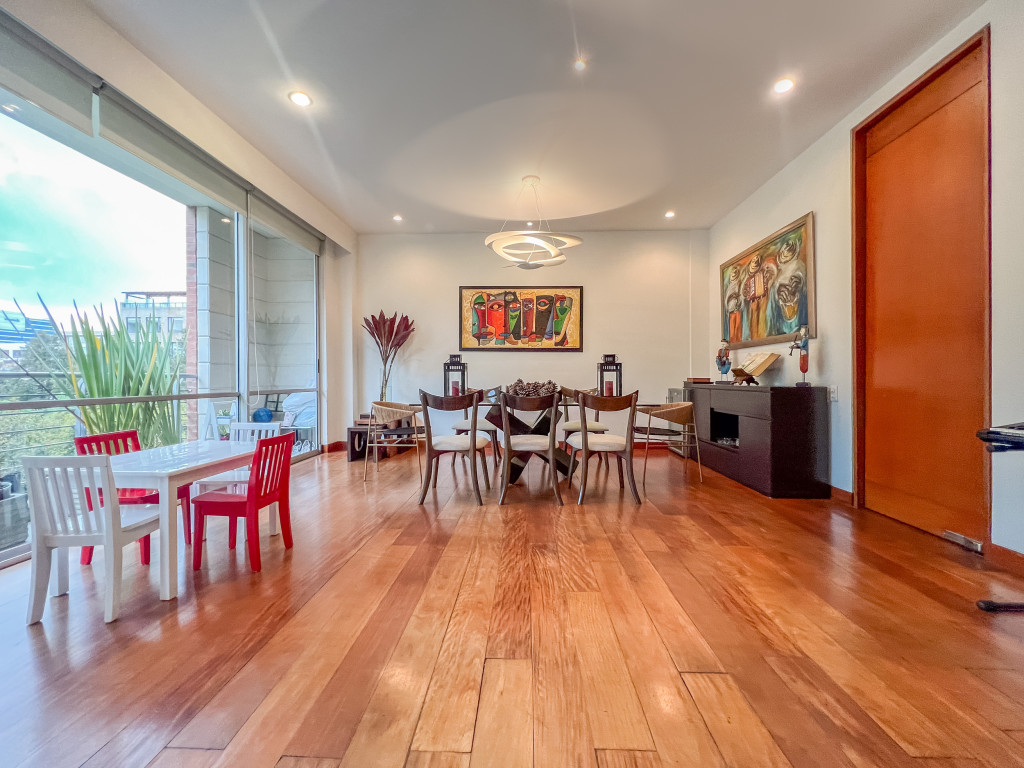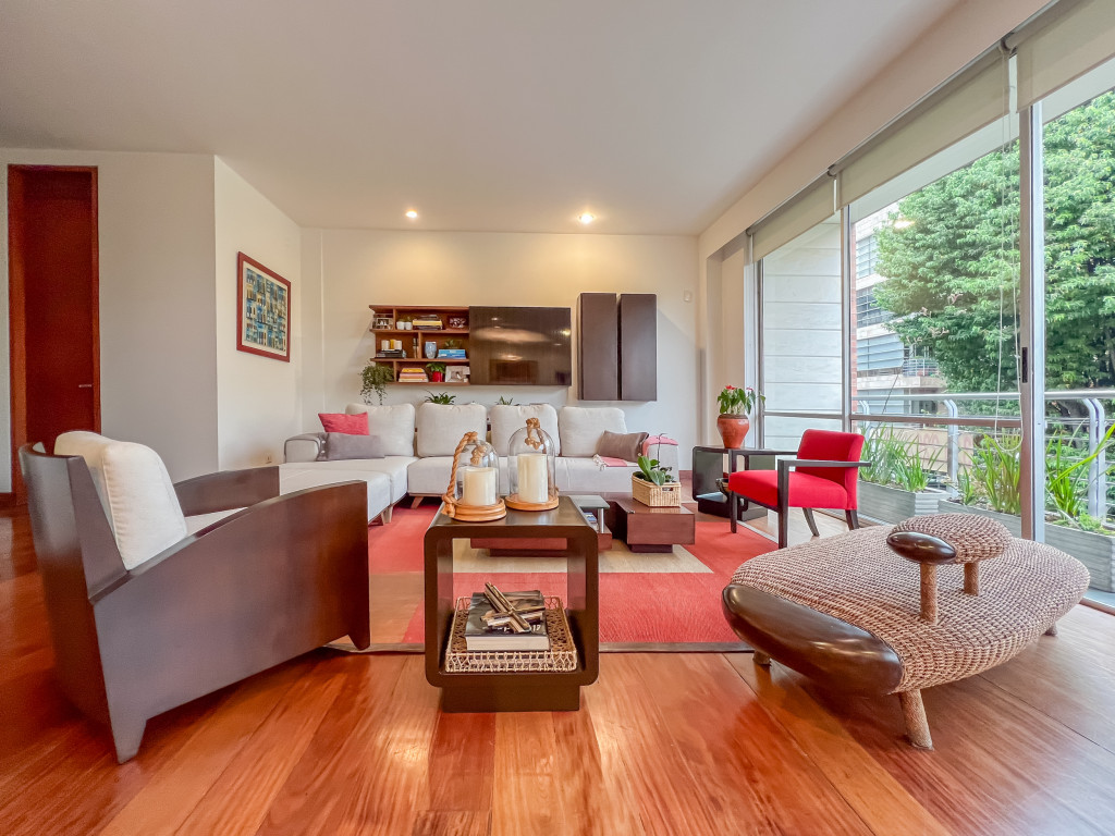 Espectacular apartamento para la venta en Chicó Reservado. Al ingresar nos recibe una gran zona social con ventanales de piso a techo y una grandiosa vista a un parque-, esta área tiene una sala-comedor integrada con un gran balcón de lado a lado. La cocina es es integral, moderna y funcional con espacio para comedor auxiliar. Cuenta con baño social, zona de lavandería, cuarto y baño de servicio. En el área privada encontramos un hall de alcobas y tres habitaciones; la habitación principal con vestier y baño en suite, la segunda y tercera habitación son amplias, tienen closets y comparten baño. El apartamento cuenta con un deposito y cuatro garajes. Esta propiedad esta ubicada en una de las mejores zona de la ciudad, rodeada de parques, bancos, restaurantes, etc.