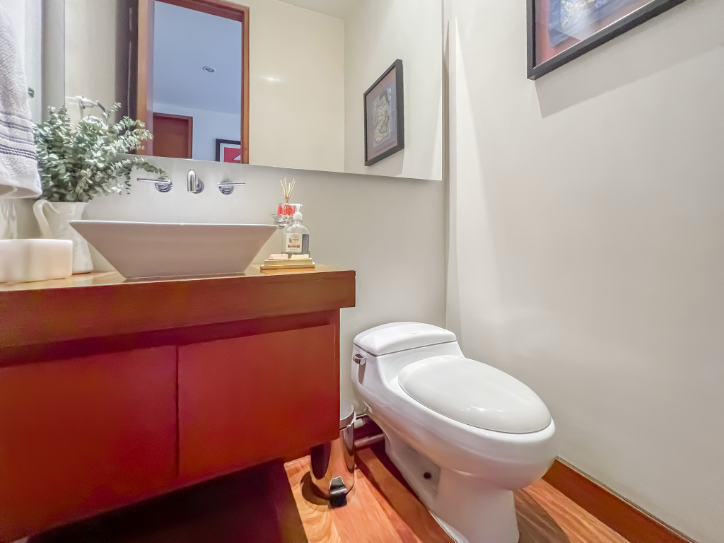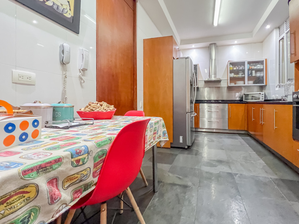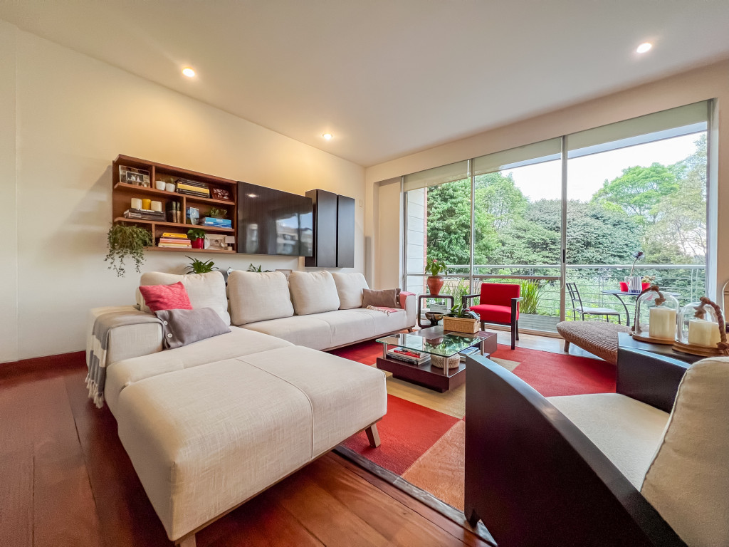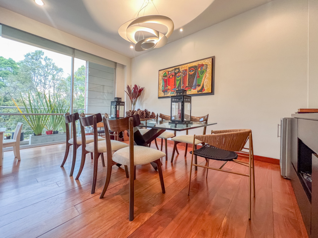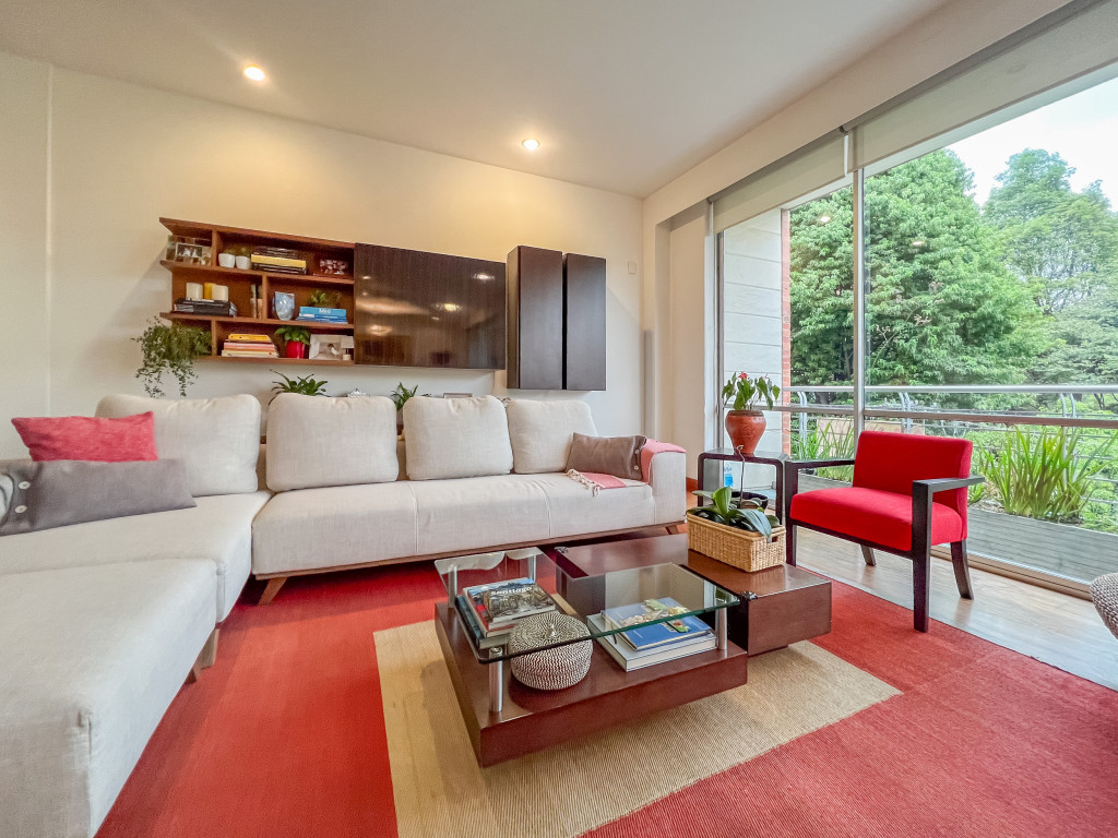 Espectacular apartamento para la venta en Chicó Reservado. Al ingresar nos recibe una gran zona social con ventanales de piso a techo y una grandiosa vista a un parque-, esta área tiene una sala-comedor integrada con un gran balcón de lado a lado. La cocina es es integral, moderna y funcional con espacio para comedor auxiliar. Cuenta con baño social, zona de lavandería, cuarto y baño de servicio. En el área privada encontramos un hall de alcobas y tres habitaciones; la habitación principal con vestier y baño en suite, la segunda y tercera habitación son amplias, tienen closets y comparten baño. El apartamento cuenta con un deposito y cuatro garajes. Esta propiedad esta ubicada en una de las mejores zona de la ciudad, rodeada de parques, bancos, restaurantes, etc.