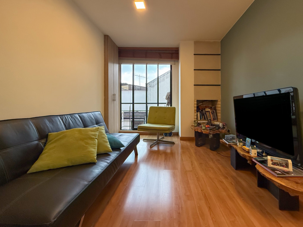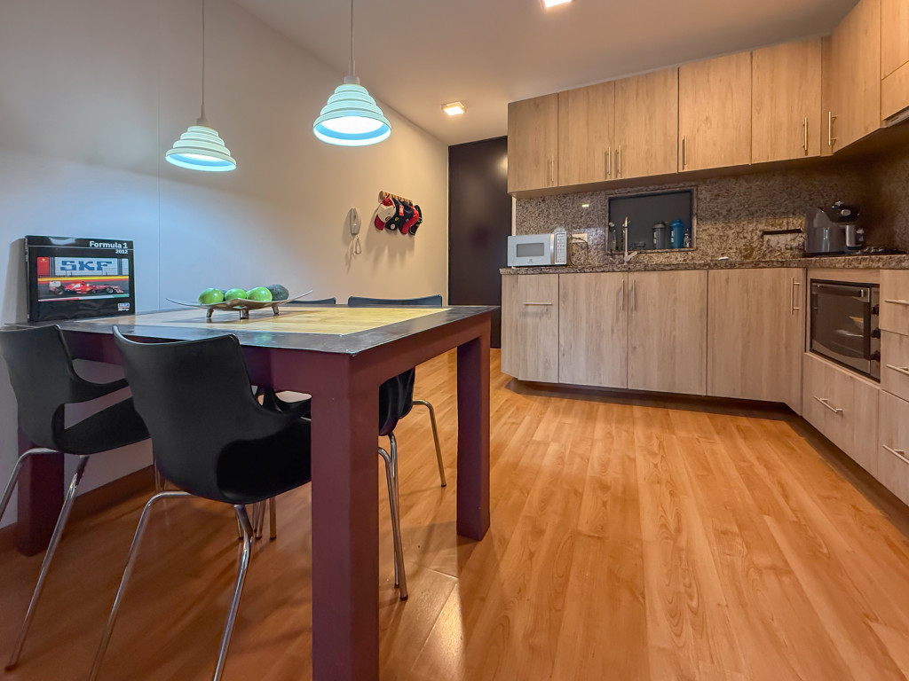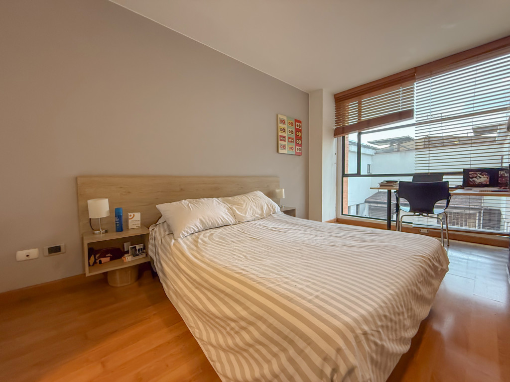 En venta apartaestudio de 46,29 m² ubicado en el tercer piso de un edificio residencial en el barrio Chico Navarra. El inmueble cuenta con una habitación, un baño, chimenea, balcón y agua caliente mediante calentador a gas. Dispone de dos parqueaderos en línea, depósito y zona de lavandería ubicada en el parqueadero. Es un apartamento interior, tranquilo y con buena distribución. El edificio cuenta con ascensor, planta eléctrica, parqueaderos para visitantes, terraza y un salón social que también funciona como gimnasio.