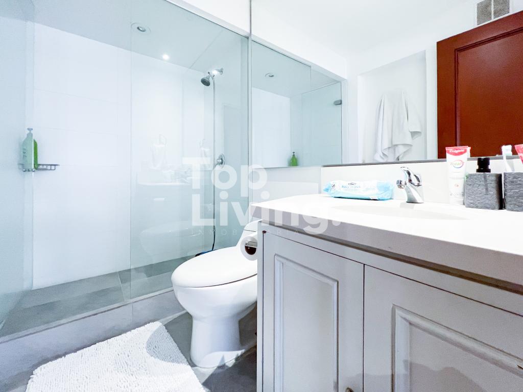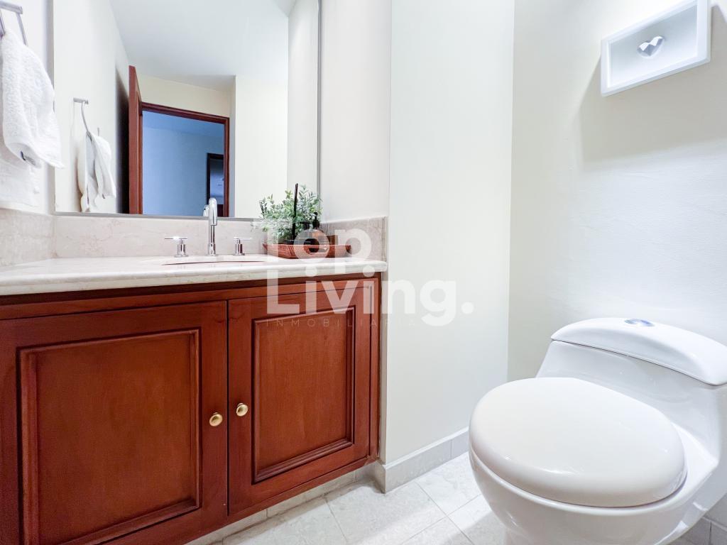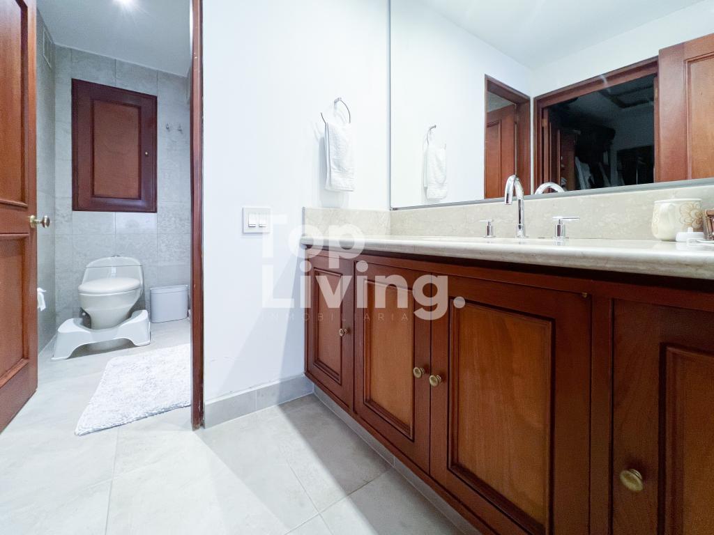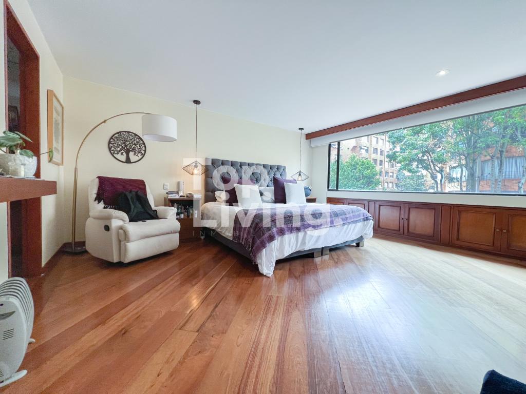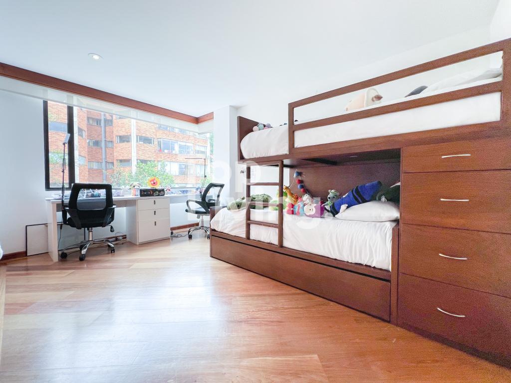 Hermoso apartamento para venta ubicado en El Nogal. Este apartamento tiene la peculiaridad de tener un piso por apartamento eso le da una privacidad total. Al ingresar por el ascensor privado encontramos una cocina totalmente dotada con su zona de lavandería y cuarto de servicio. Cuenta con una amplia sala con chimenea lo cual lo hace acogedor, un comedor independiente y su estudio. Cuenta con tres habitaciones dos con baño en suite, la principal con walk-in closet y un family room muy espacioso. Este apartamento tiene dos parqueaderos y un deposito.