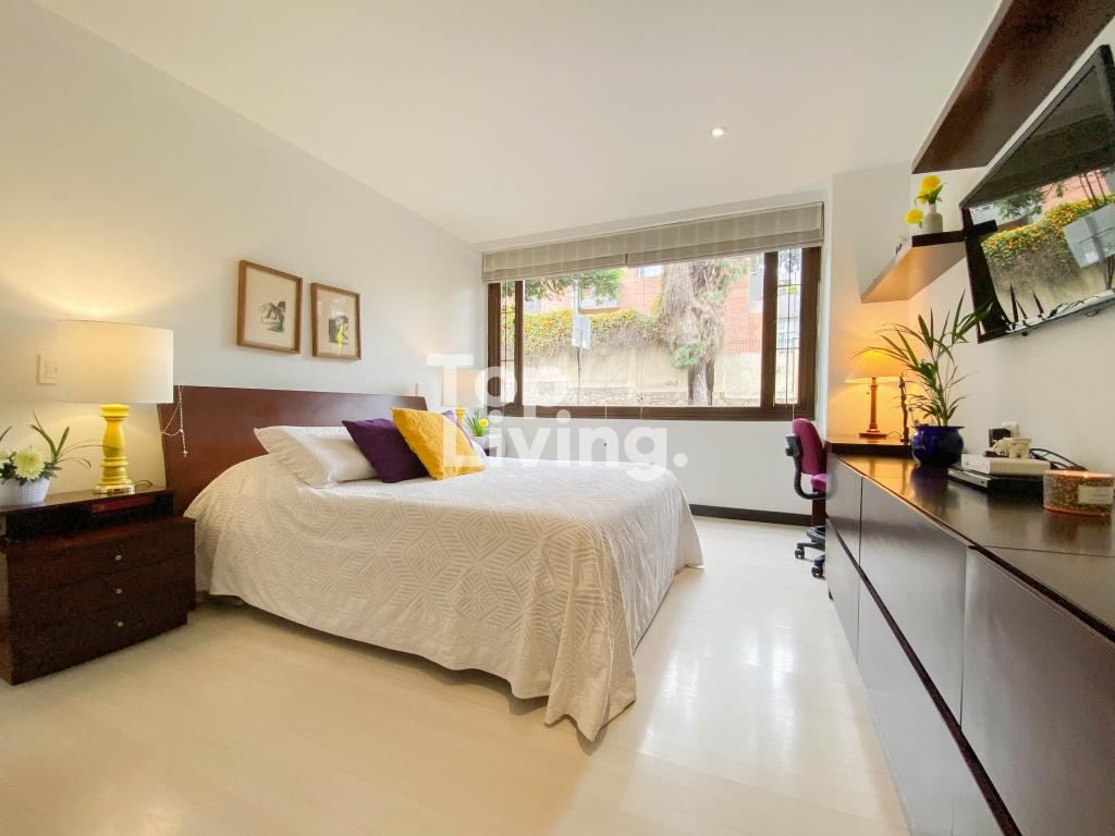 Hermoso apartamento de 365 mts con 3 terrazas y patio interior en Rosales. Al entrar nos recibe zona la social muy iluminada que consta de sala, comedor, baños social, cocina tipo amerciana, cuarto y baño de servicio, zona de lavandería independiente, terraza, jardin interior y un estudio/ habitación con baño en suite. Saliendo de la cocina encontramos una terraza muy amplia. Al ingresar a la zona privada encontramos 4 habitaciones, 3 con closets empotrados y comparteb un baño y la principal con walking closet y baño en suite. Una de las habitaciones auxiliares tiene salida a una terraza muy amplia completamente exterior. El apartamento es totalmente exterior, se complementa con 2 parqueaderos independientes y 1 depósito.