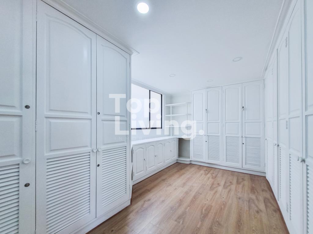 Espectacular apartamento con dos ascensores privados para venta. Apartamento clásico, recientemente remodelado con amplísima zona social con buena luz. Se divide en comedor independiente, sala y estudio. La cocina integral cuenta con isla central, electrodomésticos nuevos, gran espacio de almacenamiento y otro amplio comedor auxiliar, además de una gran despensa y un espacioso cuarto de servicio con su baño. En la zona privada tenemos cuatro enormes habitaciones cada una con su baño iinterior, la principal con walk-in closet y en el baño principal tenemos un turco y jacuzzi. Además hay un gran family o sala de televisión. Se complementa con 5 parqueaderos independientes y dos depósitos de buen tamaño.