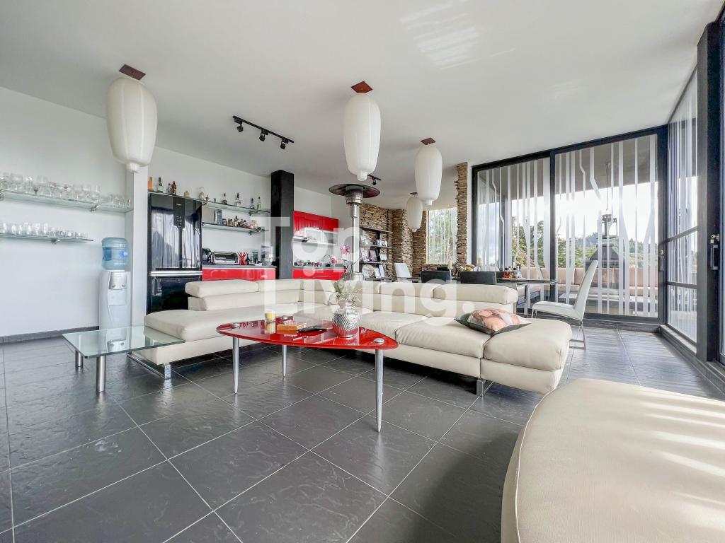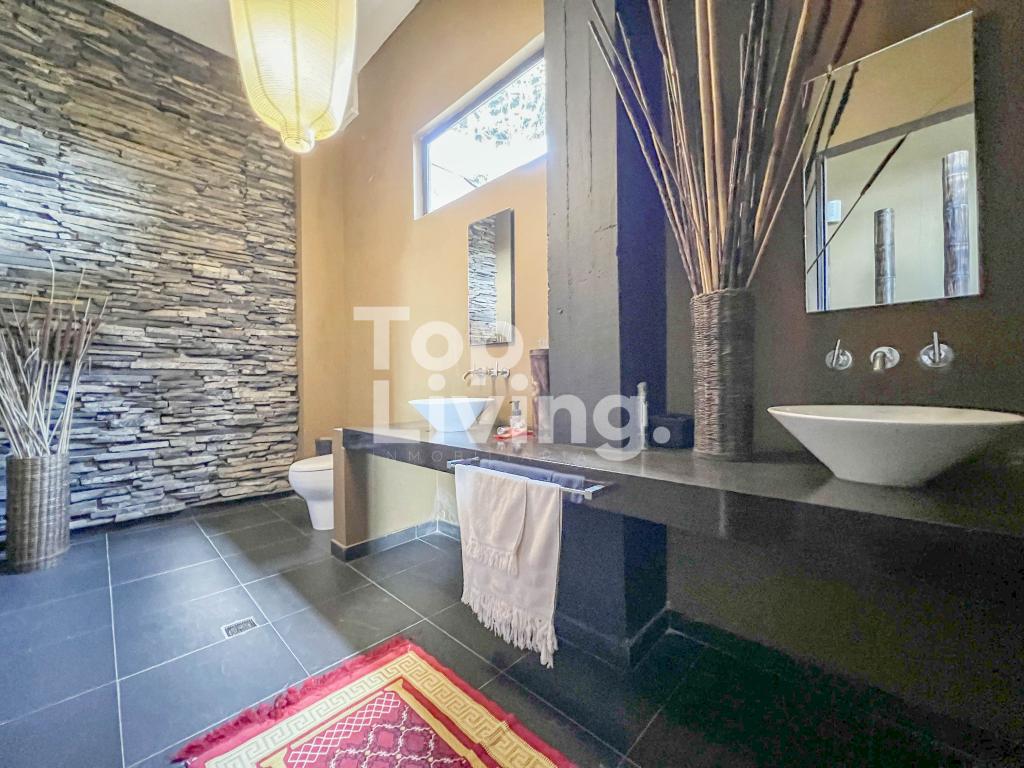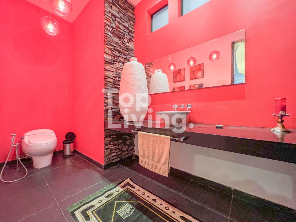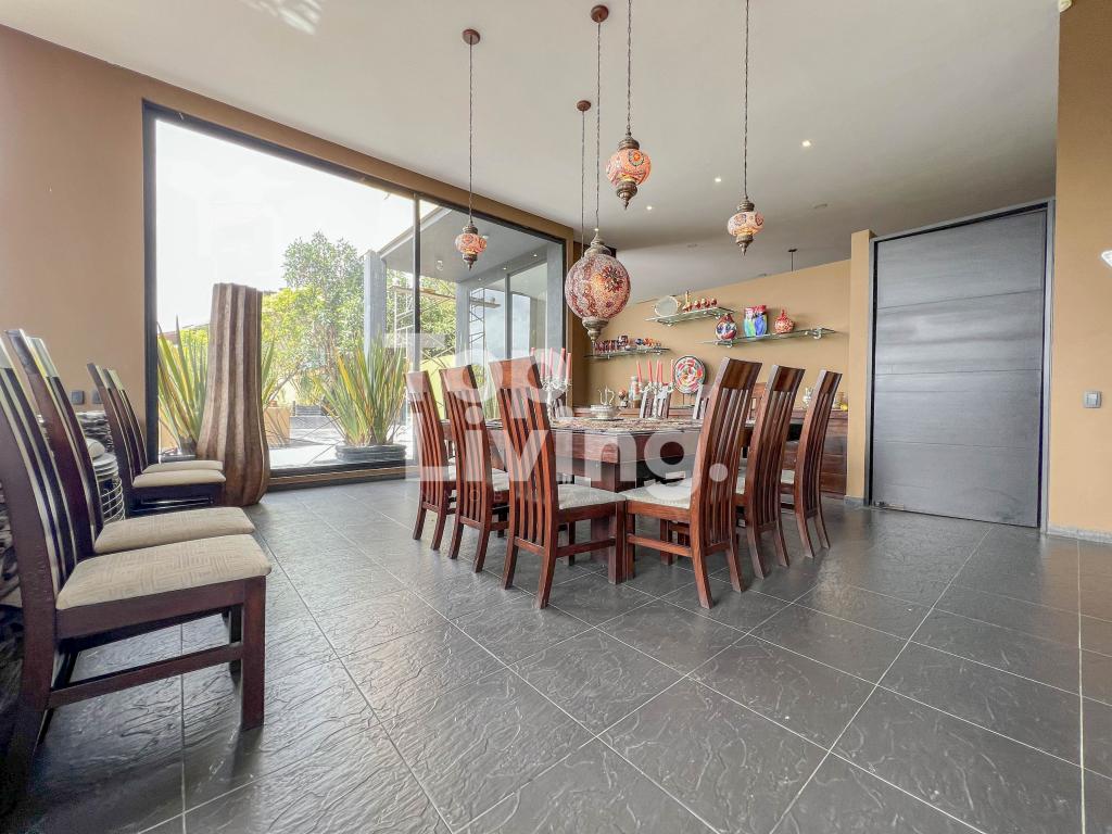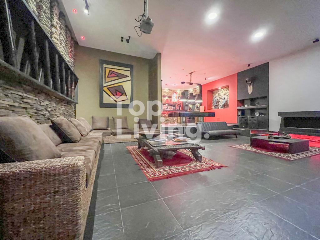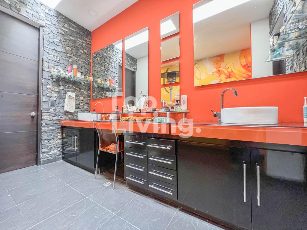 Al ingresar a través de un gran hall hay una amplia sala con grandes ventanales, chimenea y otra sola con acceso a una terraza con hermosa vista. Luego encontramos un comedor independiente de gran tamaño y sala auxiliar. La cocina es moderna y grande. En el mismo piso, ingresando por la cocina o por el pasillo principal, hay un salón de juegos de dos niveles, con sala, chimenea, un salón de billar, bar y un baño. En el segundo piso hay dos cuartos cada uno muy grande con baño en suite y una vista increíble a las montañas; saliendo de las habitaciones y en el mismo nivel hay: un baño turco, un sauna, una piscina y un espacio grande adecuado para máquinas de gimnasio, también hay baño y ducha para estas zonas húmedas. Subimos, al tercer piso en donde está la habitación principal muy extensa con baño en suite y walk - in closet, terraza cubierta y saliendo de esta una sala y cocina auxiliar y chimenea de leña. Toda la casa y habitaciones tiene una vista increíble a las montañas.