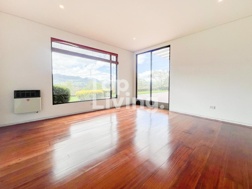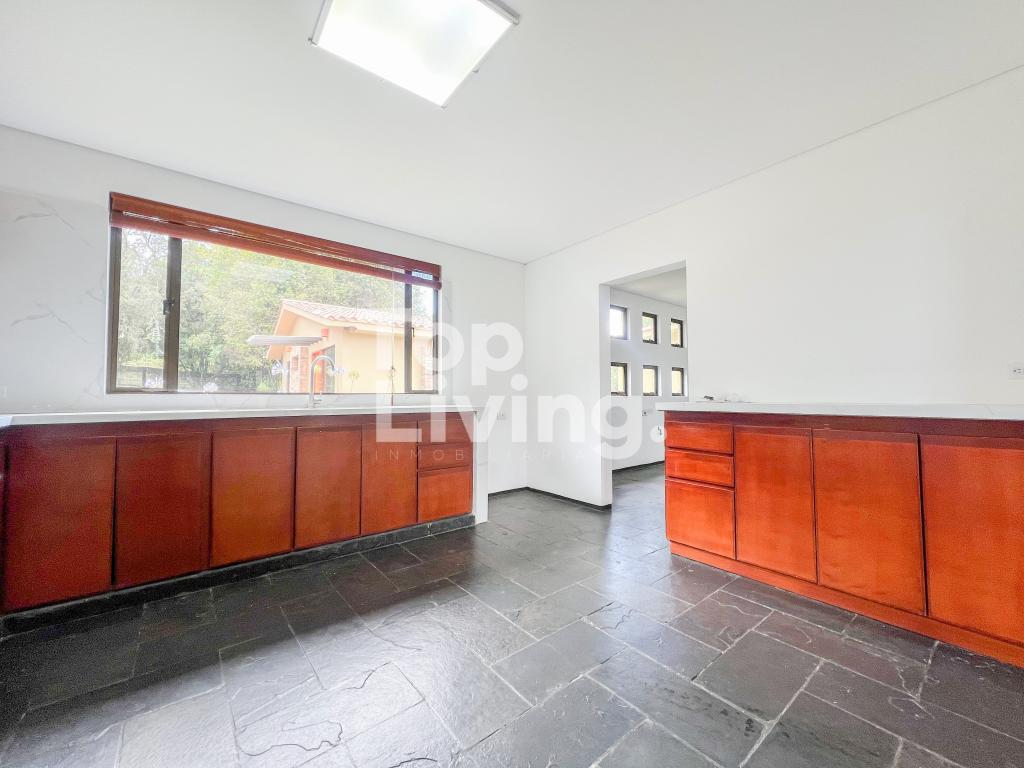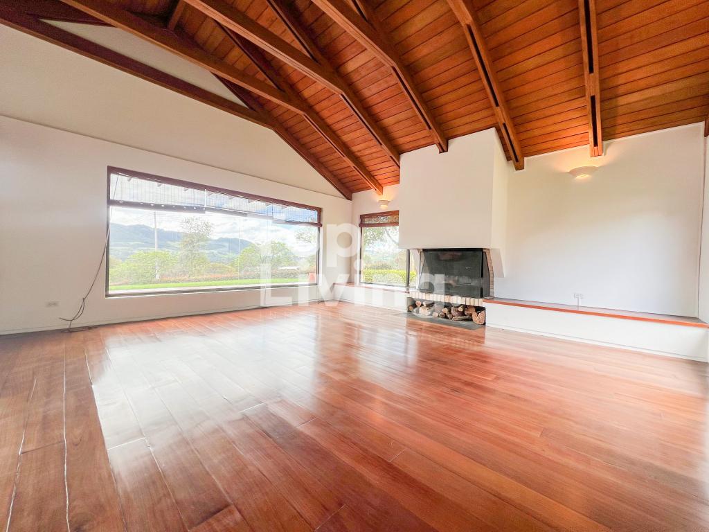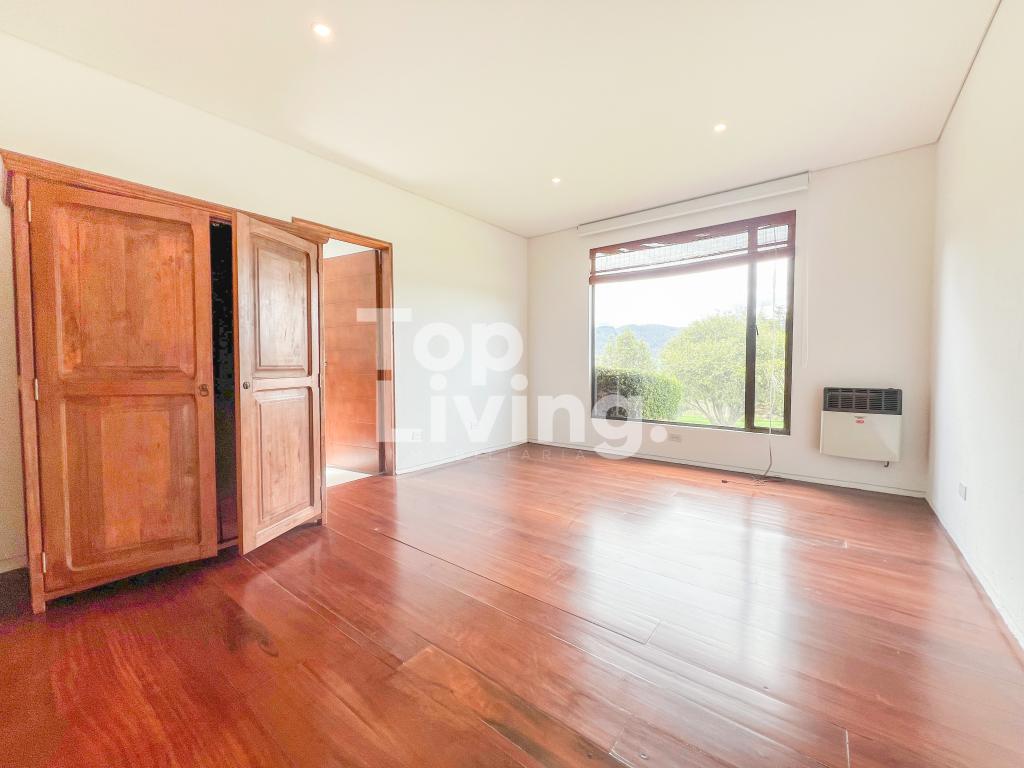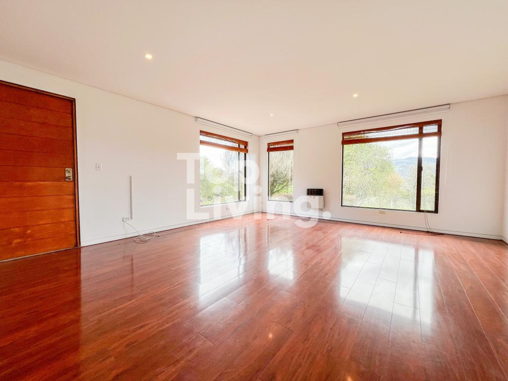 Linda casa para arriendo ubicada en La Calera. Al ingresar a esta propiedad encontramos un espectacular espacio lleno de arboles y vista, al final del camino encontramos una encantadora casa amplia, iluminada y acogedora. Al entrar encontramos un gran espacio con una sala de muy buen tamaño y ventanales, el comedor independiente es muy cómodo también. Tiene una super terraza a la cual podemos acceder desde cualquier punto del área social. La cocina es integral, muy funcional y con ventilación natural.; cuenta con zona de ropas, cuarto y baño de servicio. En la zona privada tenemos un gran family room y cuatro habitaciones, la habitación principal con vestier y baño en suite y las otras habitaciones con closet y baño en suite. Esta propiedad cuenta con una casa de huéspedes adicional, tiene cocina tipo americana, sala y comedor en un espacio, dos habitaciones y un baño.