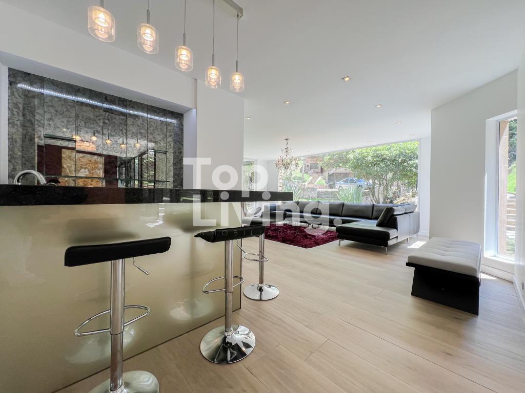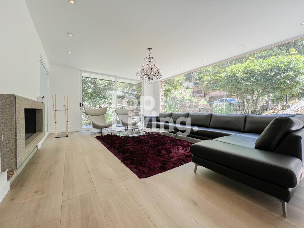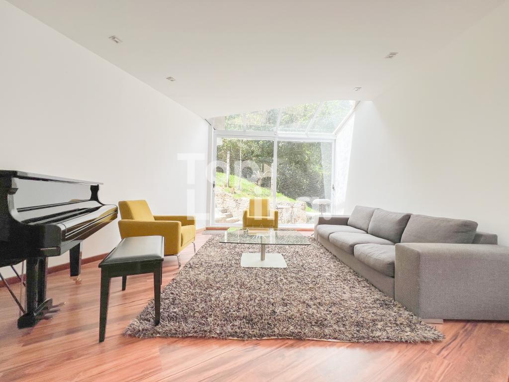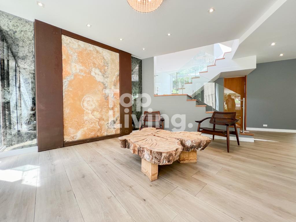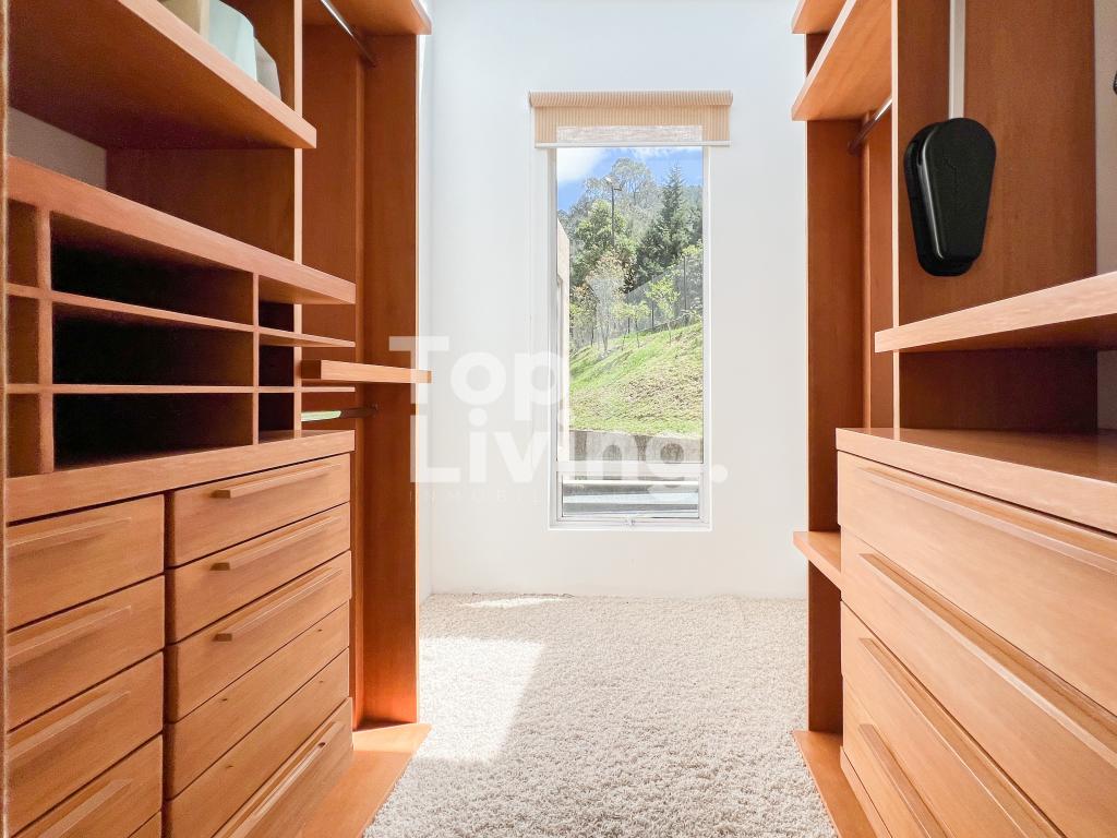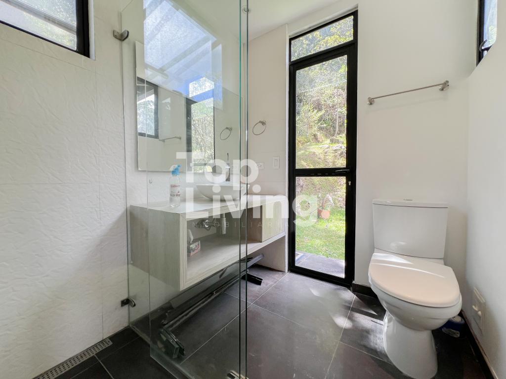 Bellísima casa ubicada en Rosales con todo lo que podamos soñar. Al entrar en la espectacular casa encontramos maravillosos espacios con ventanales de piso a techo, una amplia sala con vistas al jardín y un gran comedor independiente. La cocina es integral, moderna, funcional, completamente equipada con electrodomésticos de alta gama, con comedor auxiliar y zona de lavandería independiente. Todos los espacios se integran armoniosamente con una grandiosa piscina climatizada con sauna, turco y un espacio para gimnasio. En el piso superior encontramos un family room, tres habitaciones con baño en suite; la habitación principal con su walk-in closet. Cuenta con casa para el servicio y guest house en forma de cabaña totalmente dotada con cocina tipo americana y dos dormitorios. Adicionalmente tenemos tres pesebreras, cancha de tenis y espacio verde con quebrada y un sendero privado a los cerros.