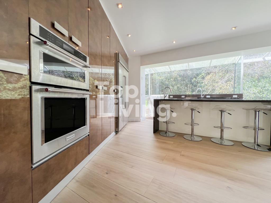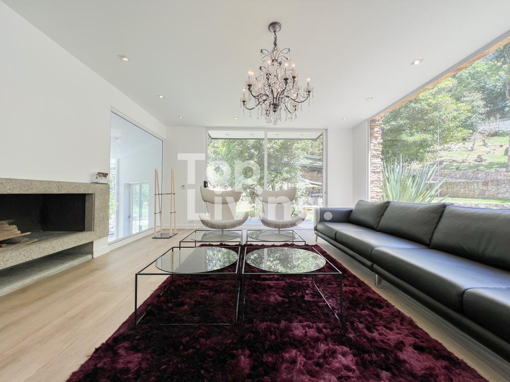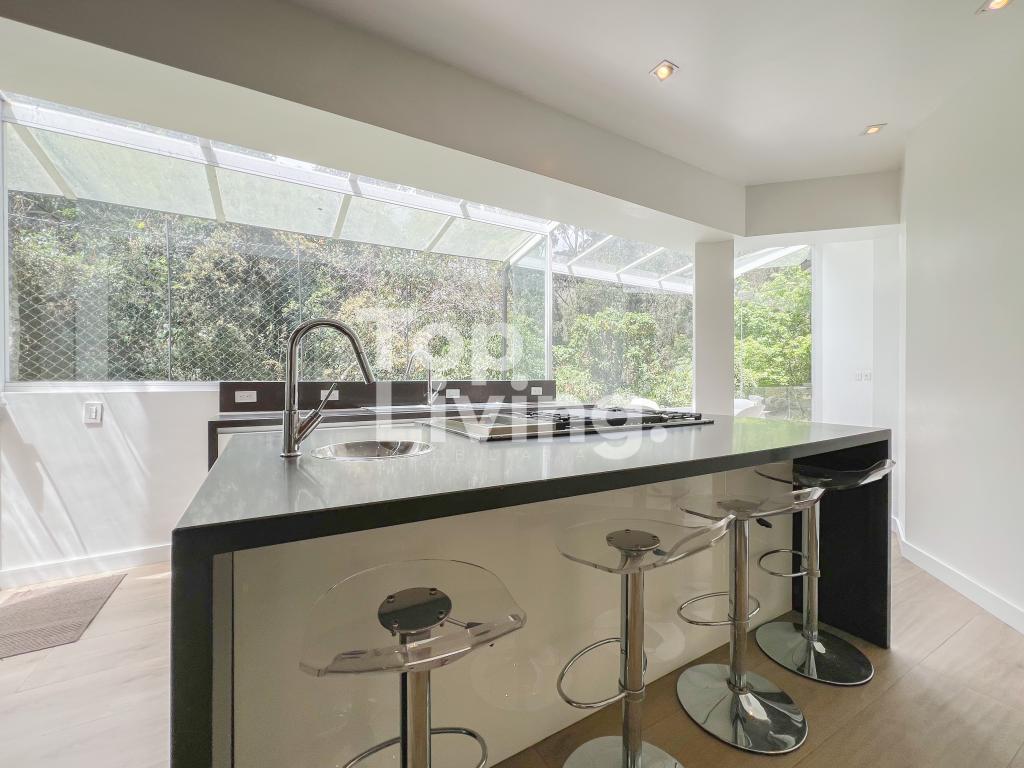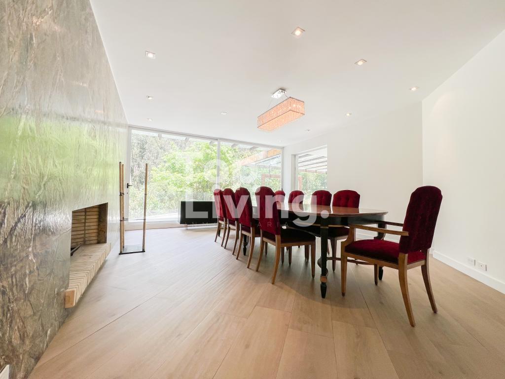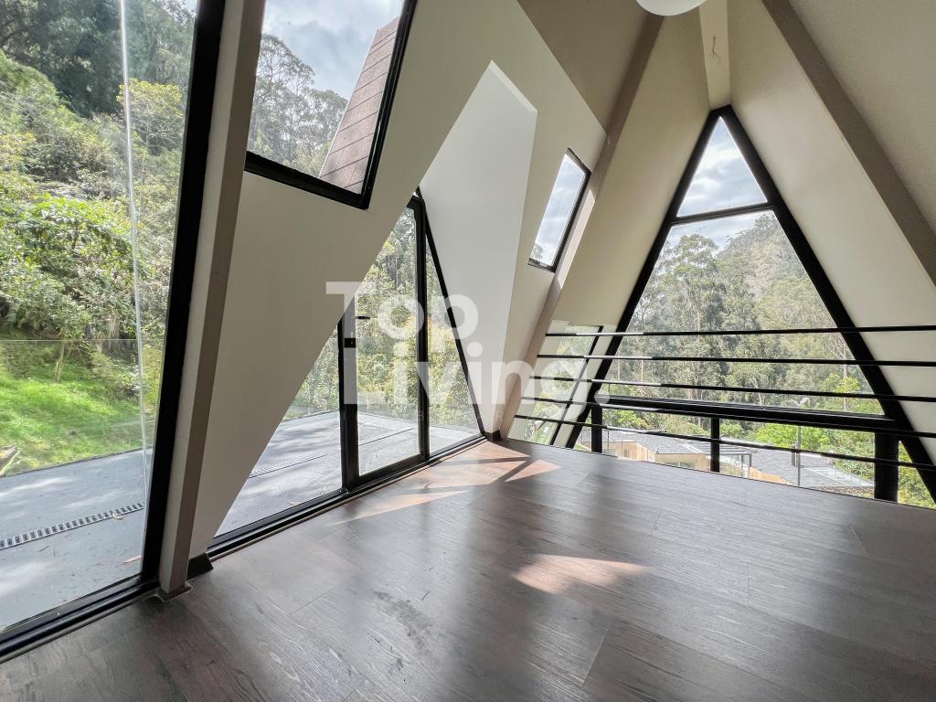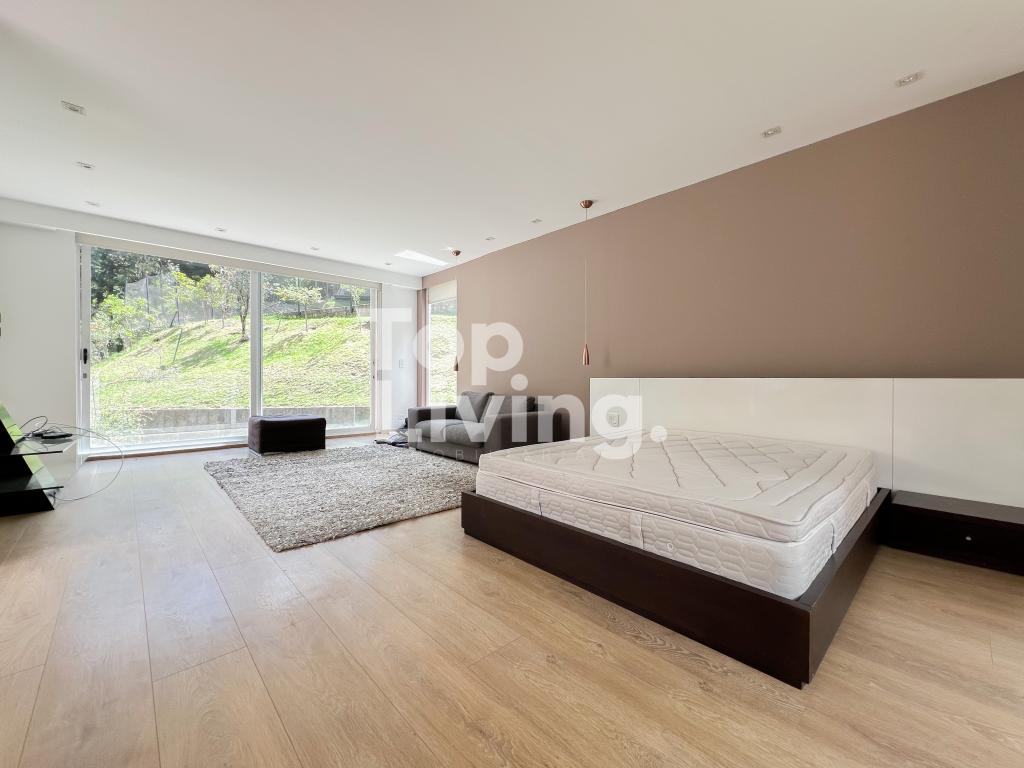 Bellísima casa ubicada en Rosales con todo lo que podamos soñar. Al entrar en la espectacular casa encontramos maravillosos espacios con ventanales de piso a techo, una amplia sala con vistas al jardín y un gran comedor independiente. La cocina es integral, moderna, funcional, completamente equipada con electrodomésticos de alta gama, con comedor auxiliar y zona de lavandería independiente. Todos los espacios se integran armoniosamente con una grandiosa piscina climatizada con sauna, turco y un espacio para gimnasio. En el piso superior encontramos un family room, tres habitaciones con baño en suite; la habitación principal con su walk-in closet. Cuenta con casa para el servicio y guest house en forma de cabaña totalmente dotada con cocina tipo americana y dos dormitorios. Adicionalmente tenemos tres pesebreras, cancha de tenis y espacio verde con quebrada y un sendero privado a los cerros.