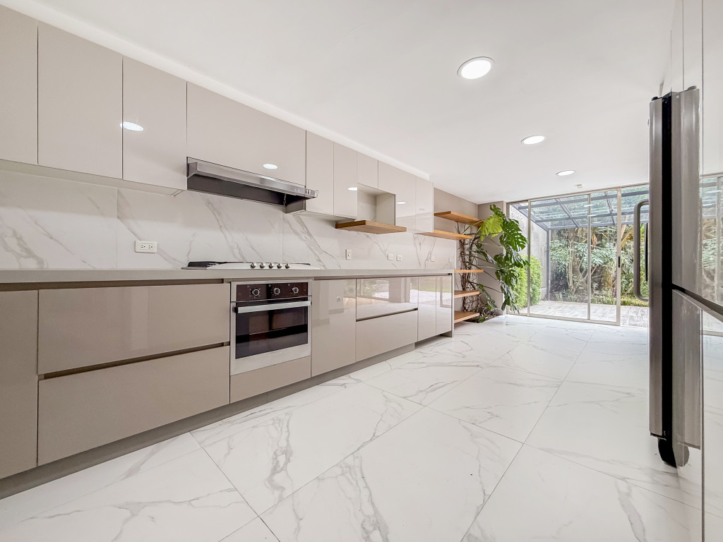 La propiedad cuenta con 4 habitaciones, incluyendo un cuarto principal con balcón y vista privilegiada al jardín. En la zona social encontrarás una acogedora sala y un comedor independiente, ambos con excelente iluminación natural.