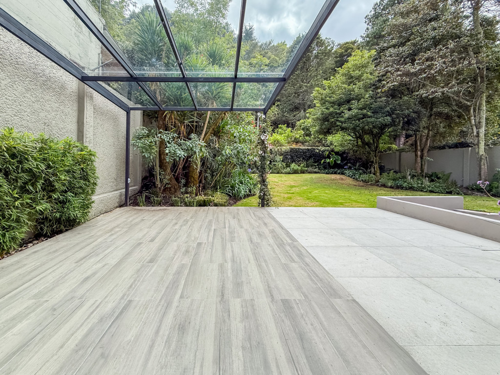 El exterior ofrece un jardín privado diseñado para disfrutar al máximo, con sala exterior, fire pit y acceso directo desde la cocina. La cocina está totalmente equipada, tiene salida al jardín y un comedor auxiliar ideal para el día a día.