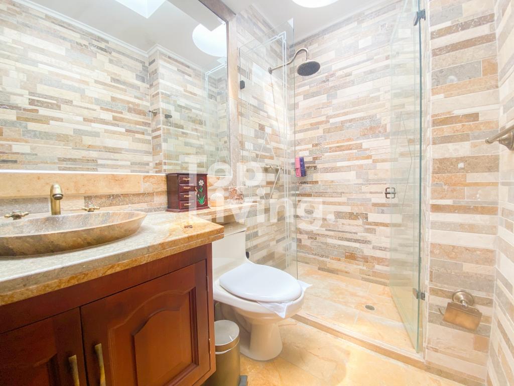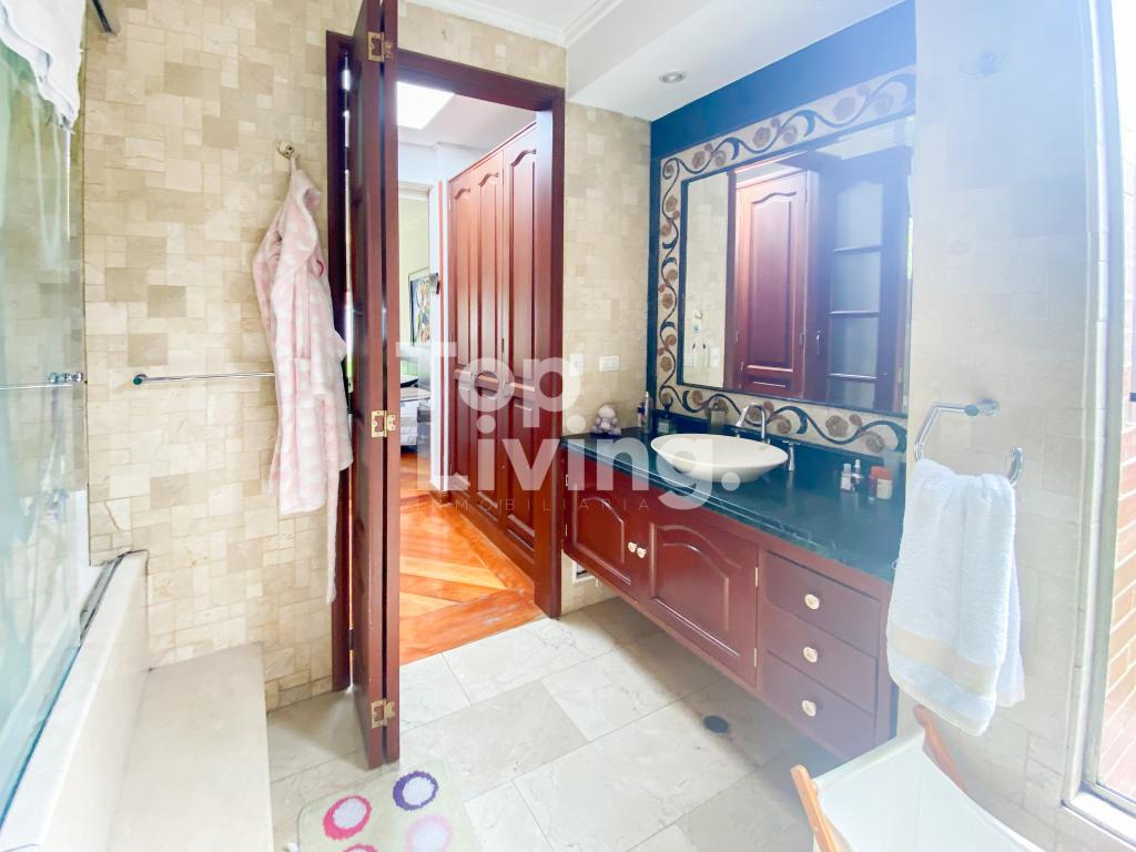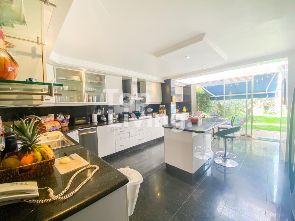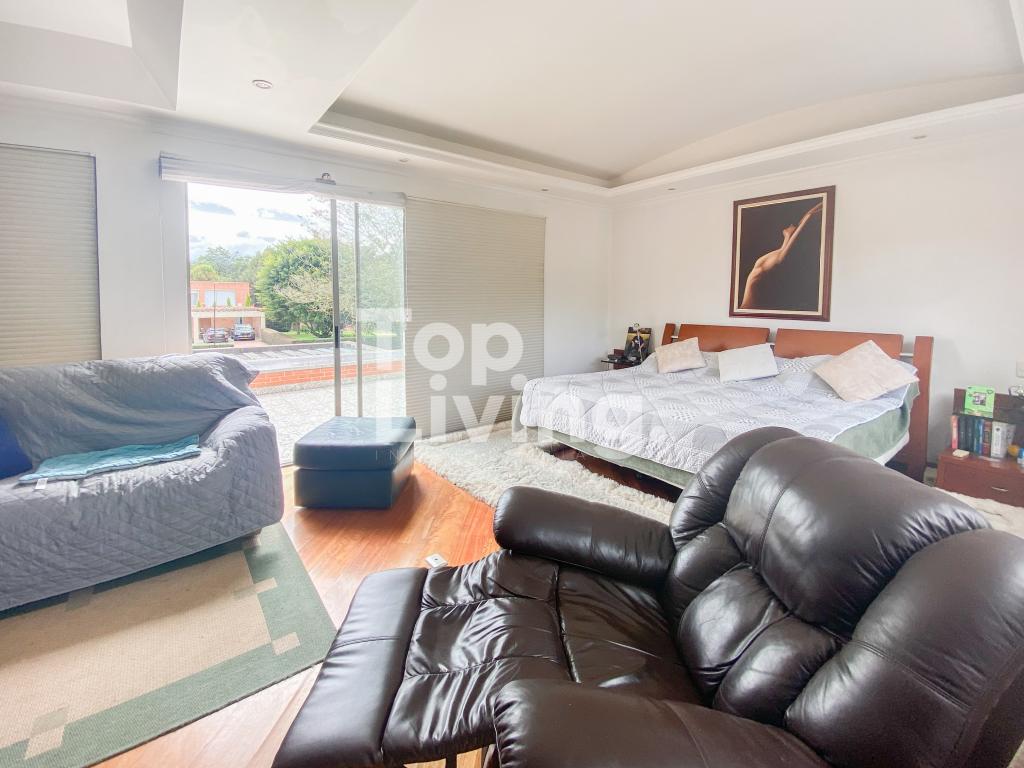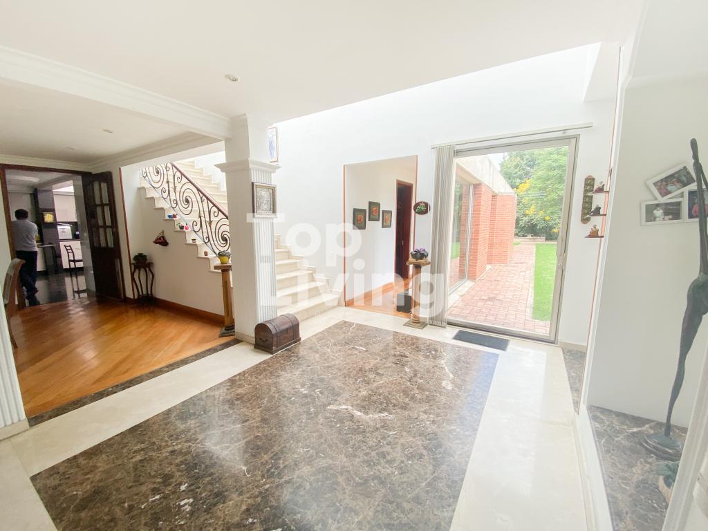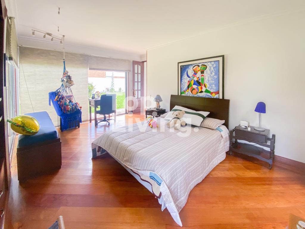 Espectacular casa de dos plantas para arriendo/venta en el exclusivo conjunto San Simón. Al ingresar encontramos amplios espacios que le aportan amplitud y claridad a la casa, la sala cuenta con ventanales de piso a techo y una agradable chimenea desde donde podemos disfrutar de la vista a un gran patio/jardín con una linda fuente, anexo a la sala encontramos un amplio estudio con opción a múltiples usos; el comedor es independiente con un buen tamaño y acceso a la cocina integral con isla, muchos muebles para guardar y electrodomésticos, complementa esta área el acceso a una terraza exterior. Cuenta con zona de ropas, cuarto y baño de servicio. En el área privada encontramos 3 habitaciones, cada una con vestier y baño en suite. En el segundo piso tenemos la habitación principal de gran tamaño con terraza, vestier y baño en suite con jacuzzi. La casa esta rodeada de jardines y dos terrazas, cuenta con parqueadero techado para dos carros y espacio para 6 en total.