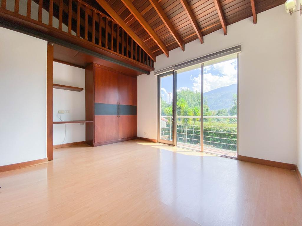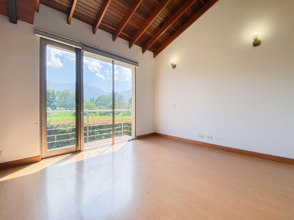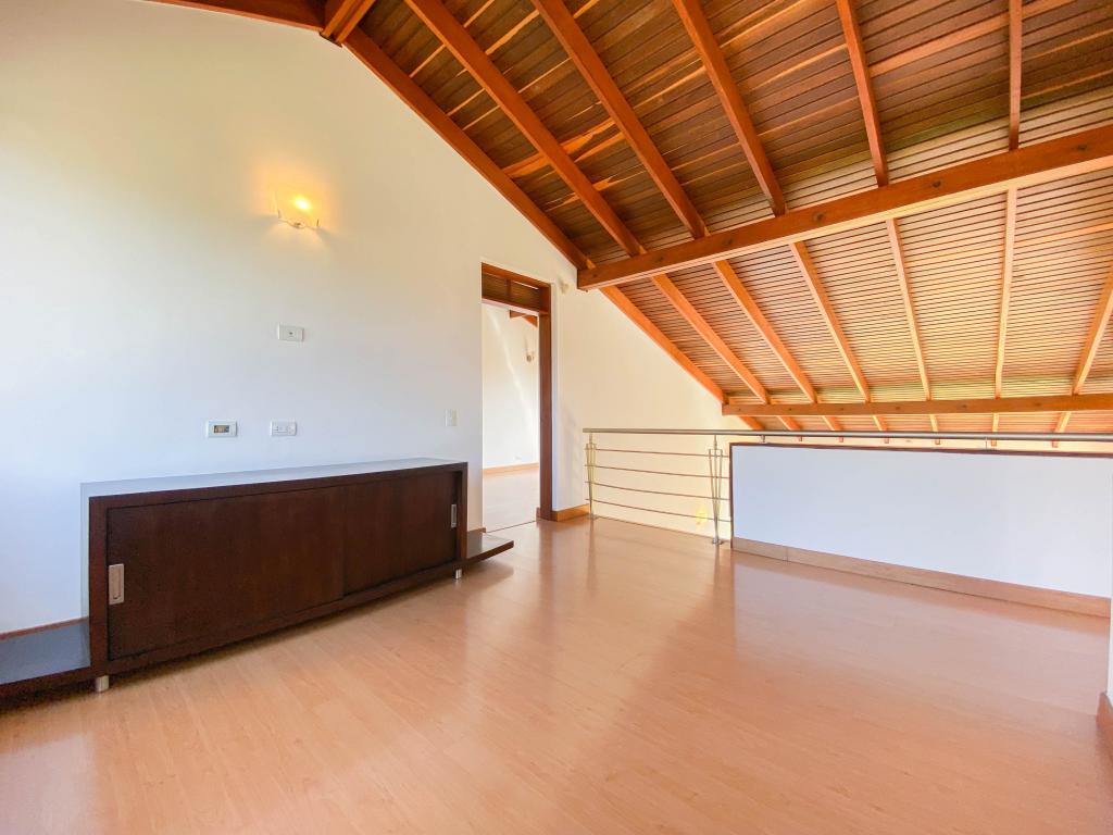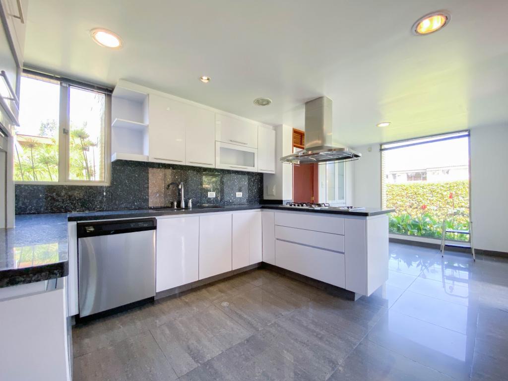 Al ingresar a esta espectacular casa nos encontramos un gran área con amplitud e iluminación. En el primer piso con una sala amplia con ventanales de piso a techo y chimenea a gas, amplio comedor independiente y una agradable zona de BBQ exterior con muebles importados. La terraza es un espacio amplio con conexión de gas para instalar calefactores, que hacen que se pueda utilizar en los días fríos de la sabana . La casa cuenta con 4 habitaciones, 3 con baño en suite, balcón y se encuentran ubicadas en el segundo piso junto al family room. La cuarta habitación está en el primer piso, donde también encontramos el estudio con chimenea a gas natural, y la zona de servicio que cuenta con una amplia cocina integral, cuarto y baño de servicio, así como un mueble amplio para depósito.