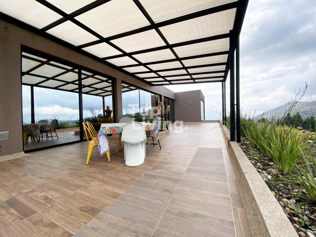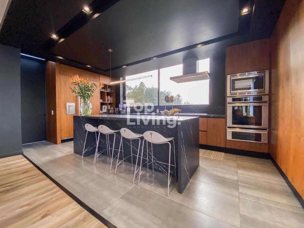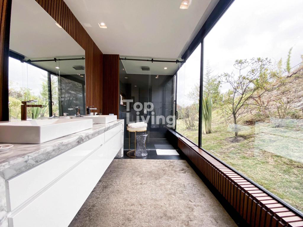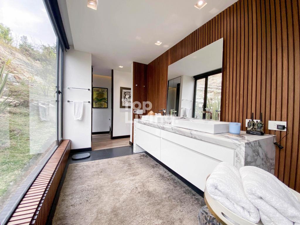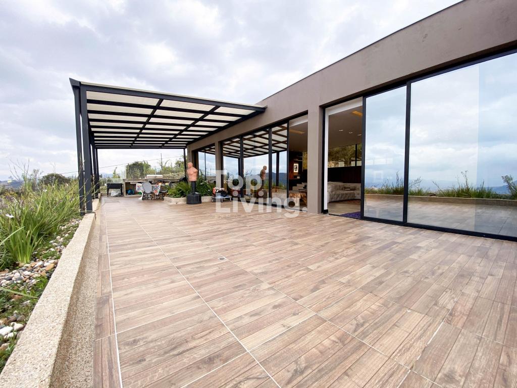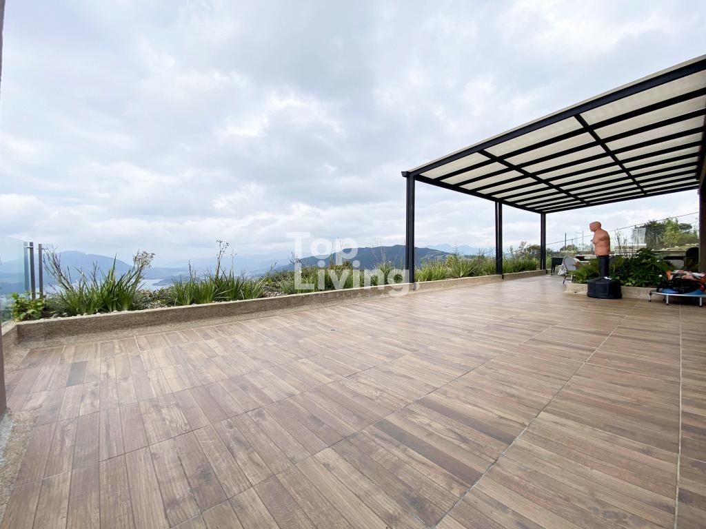 Espectacular casa para arriendo y venta vía La Calera. Al llegar a la propiedad encontramos un espacio con mucha vegetación, vista premium al embalse de San Rafael y montañas que circundan, así como vista a Bogotá. Al ingresar a la casa nos recibe un hall muy iluminado con grandes ventanales, al subir tenemos una gran zona social con una sala-comedor en un solo espacio, chimenea a gas que nos conecta con acogedor estudio, toda esta área nos da acceso directo a una gran terraza de 150 mts con pérgola y zona de BBQ, desde acá la maravillosa vista al embalse completan esta zona. La cocina es moderna, tipo americana, funcional y con electrodomésticos de alta gama. Cuenta con zona de ropas independiente, cuarto y baño de servicio. Al bajar tenemos el área privada con un amplio hall de entrada y tres habitaciones con baño en suite, mucha iluminación y acceso a un gran jardín.