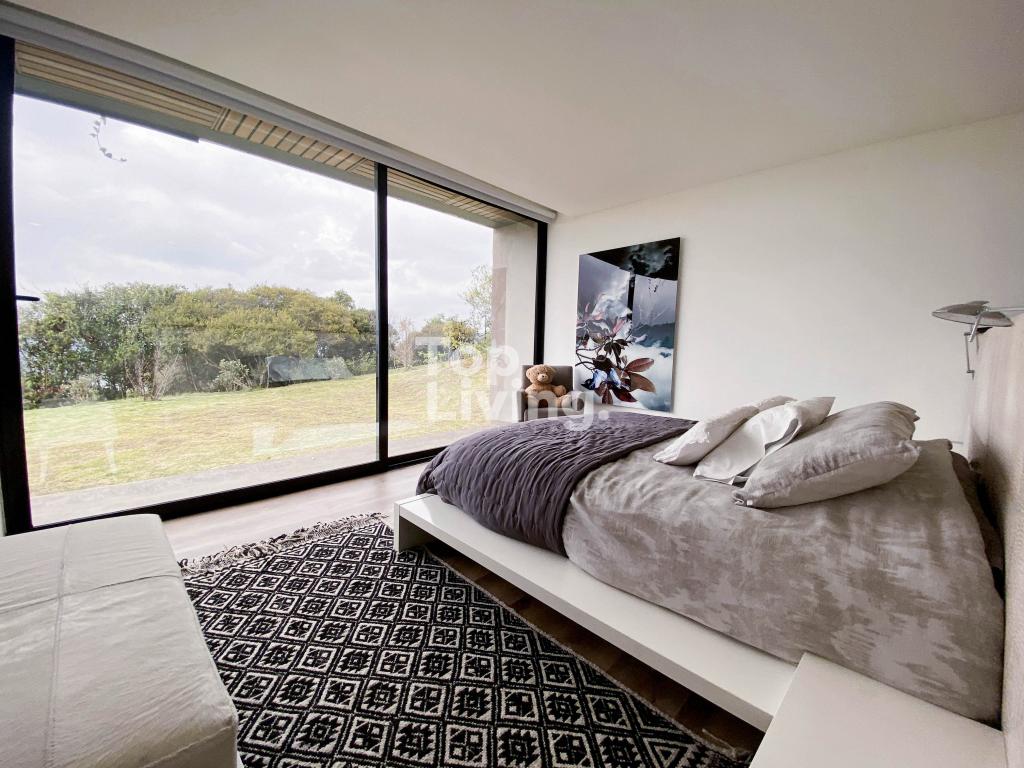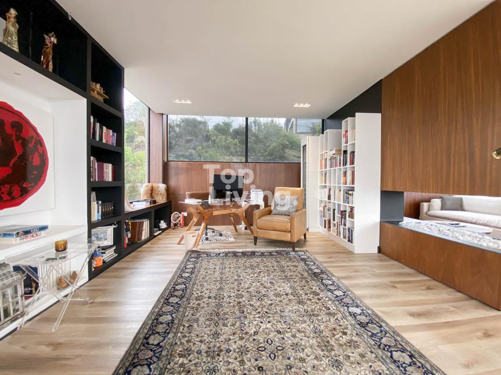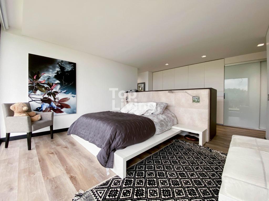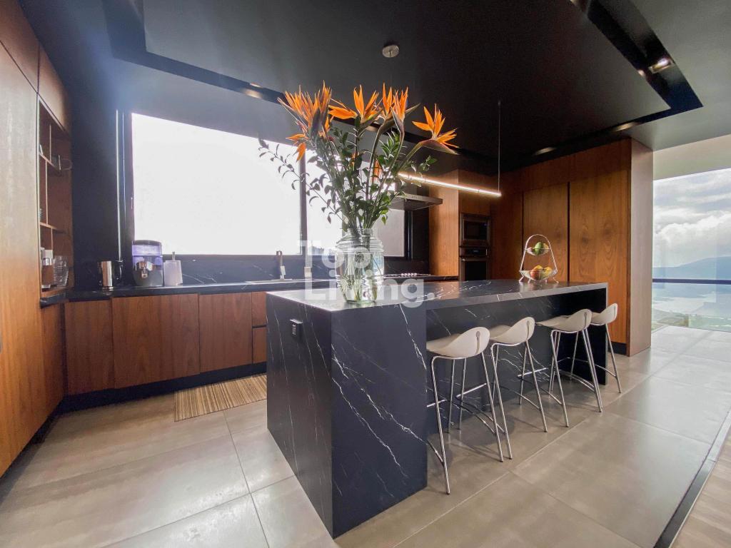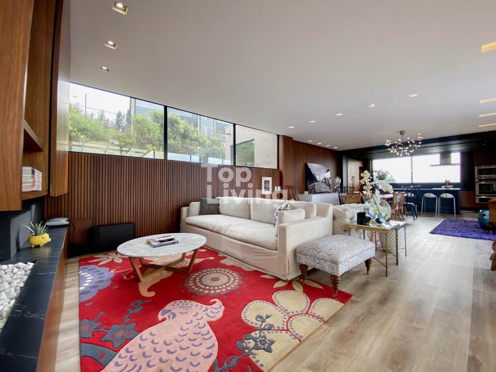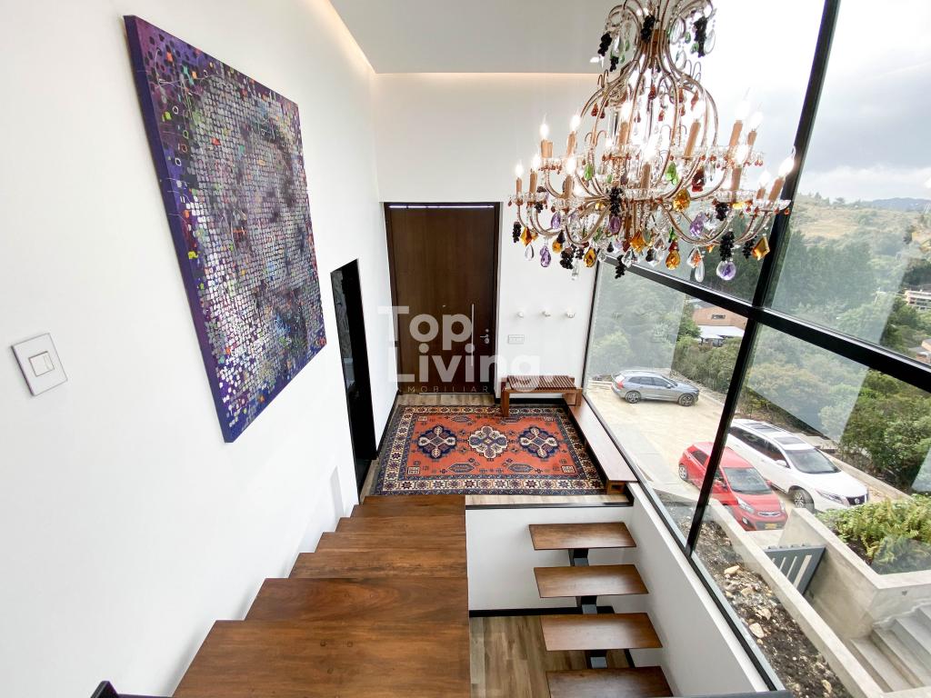 Espectacular casa para arriendo y venta vía La Calera. Al llegar a la propiedad encontramos un espacio con mucha vegetación, vista premium al embalse de San Rafael y montañas que circundan, así como vista a Bogotá. Al ingresar a la casa nos recibe un hall muy iluminado con grandes ventanales, al subir tenemos una gran zona social con una sala-comedor en un solo espacio, chimenea a gas que nos conecta con acogedor estudio, toda esta área nos da acceso directo a una gran terraza de 150 mts con pérgola y zona de BBQ, desde acá la maravillosa vista al embalse completan esta zona. La cocina es moderna, tipo americana, funcional y con electrodomésticos de alta gama. Cuenta con zona de ropas independiente, cuarto y baño de servicio. Al bajar tenemos el área privada con un amplio hall de entrada y tres habitaciones con baño en suite, mucha iluminación y acceso a un gran jardín.