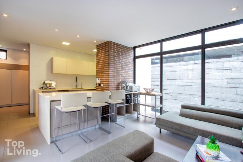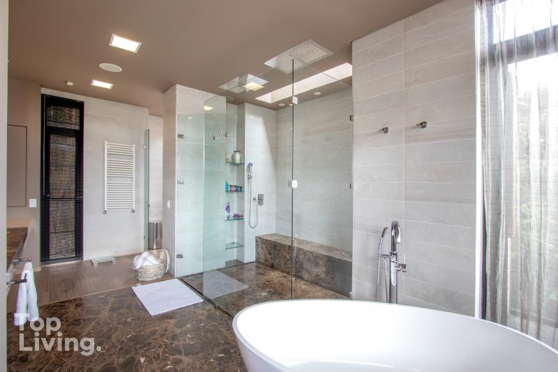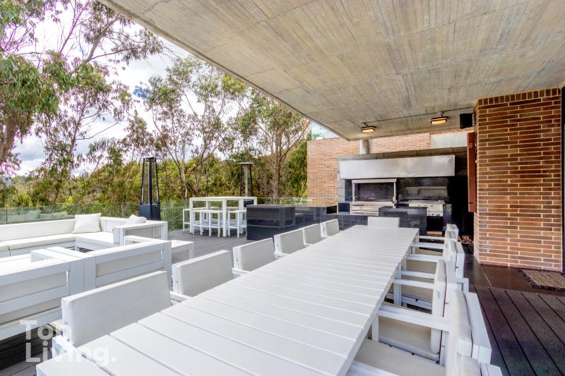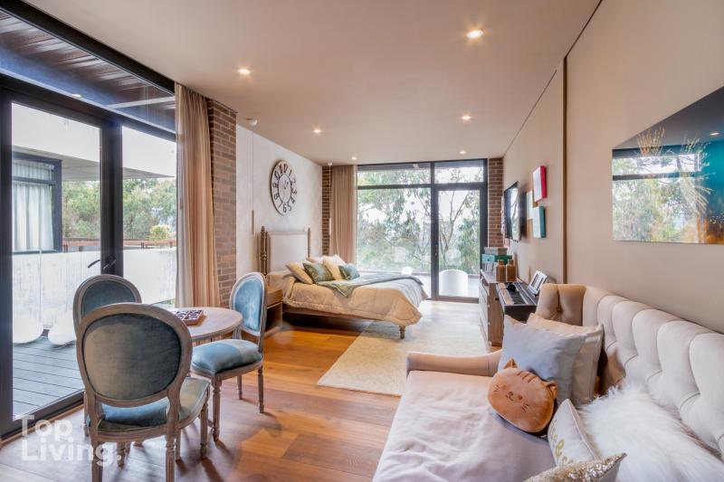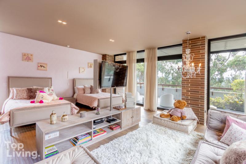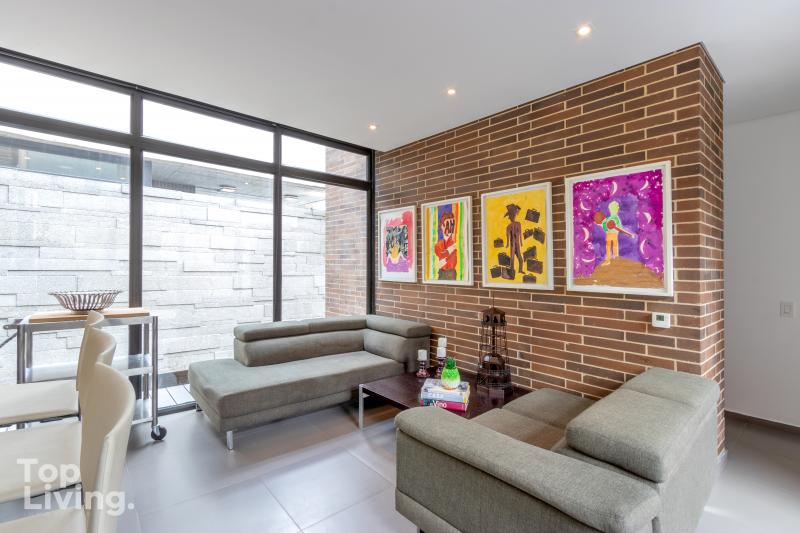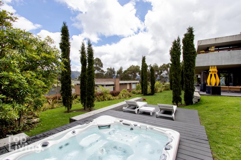 Espectacular casa de diseño en una zona exclusiva y privilegiada. Propiedad de 1100 m2 de construido con maravillosos espacios y ventanales de piso a techo. En la zona social tenemos dos salas, un family room, un estudio acogedor con cava de vinos; dos cocinas, un amplio comedor y todo con acceso a las terrazas. En el segundo piso hay 5 habitaciones cada una con vestier y baño en suite, todos con salidas a terrazas independientes. Una de las terrazas con sala, chimenea a gas y jacuzzi, otra con BBQ y maravillosa vista al bosque que lo hace el lugar perfecto para compartir con amigos y familia. Cuenta con ascensor, despensas con cava de vinos, dos habitaciones para las empresas de servicio, salón de conductores, cancha de tenis, cancha multiple y parque infantil.
