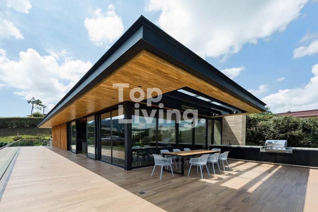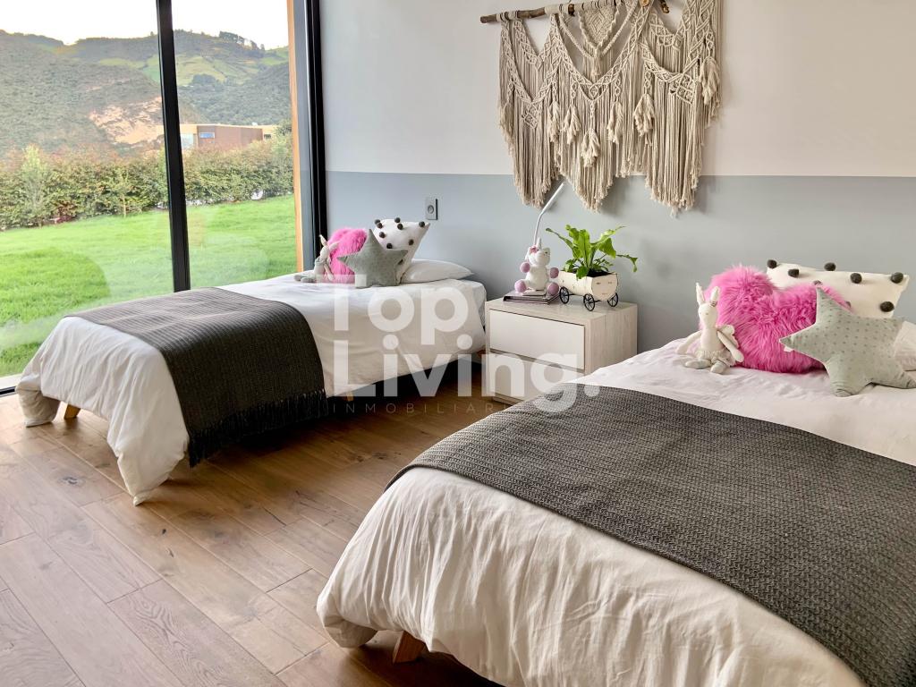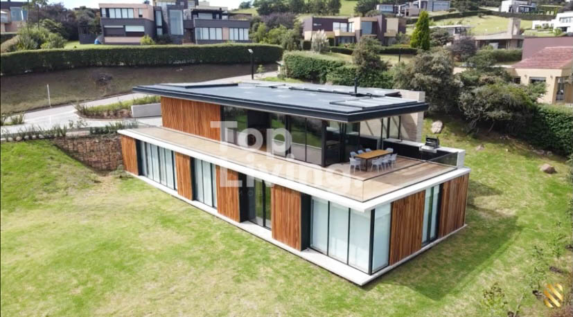 Casa con arquitectura muy moderna en la que el piso superior está construido en estructura metálica, lo que hace los espacios mas limpios y amplios, libres de columnas. Obra climática, muros dobles y la casa se hizo levantada del piso; toda la ventaneria de la casa es termo acústica y todo el techo es en madera natural. En el primer nivel se encuentra el area social con espacios integrados en una amplia sala y comedor y una cocina principal súper moderna con acabados y electrodomésticos de lujo (torre de hornos, nevera y congelador panelables, tepanyaki, Plancha tipo asador y cubierta de inducción), mesones importados en dekton español.También cuenta con una Chimenea alemana con combustión lenta.La terraza es techada y tiene BBQ ( marca Napoleón) empotrado en la mampostería y calentador de techo. La terraza se integra a toda el área social abriendo las puertas- ventanas. En la zona privada encontramos cuatro habitaciones cada una con baño en suite.