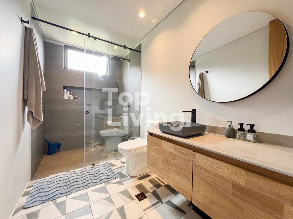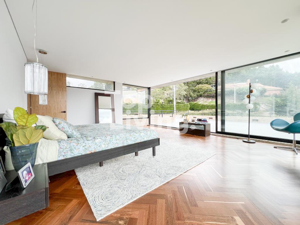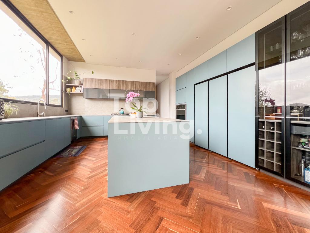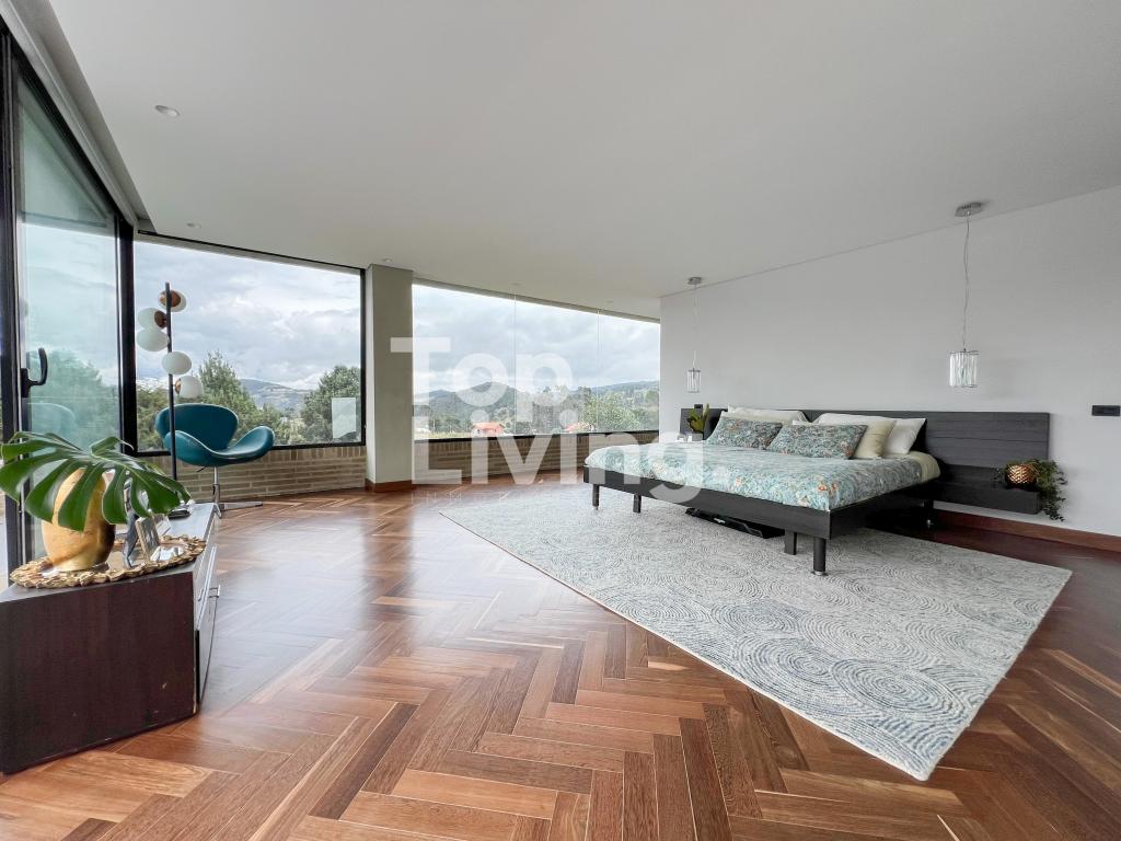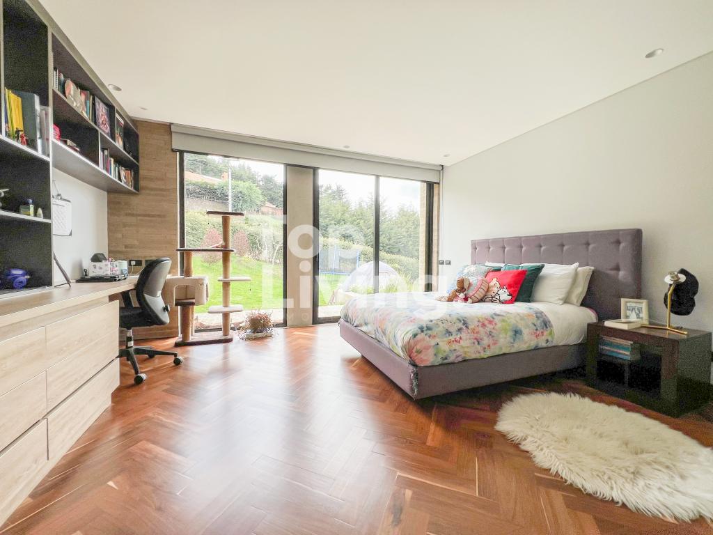 Espectacular casa para venta en La Calera, ubicada en Sikasue. Al ingresar a esta propiedad encontramos grandes espacios, nos recibe un jardín central que le da mucha luminosidad a la casa, por un lado encontramos una gran zona social con ventanales de piso a techo con una agradable chimenea a gas y salida a una gran terraza con BBQ que se encuentra integrada a esta zona y nos lleva a un inmenso jardín y una vista divina; complementa esta área una espectacular cocina tipo americana, iluminada, moderna, funcional y con electrodomésticos de alta gama; cuenta con zona de ropa, cuarto y baño de servicio. En el área privada de este piso tenemos, un baño social, un estudio de buen tamaño, un family room y dos habitaciones con Vestier, baño en suite y salida al jardín. En el segundo piso encontramos dos habitaciones con terraza, vestier y baño en suite. Abajo en el piso inferior cuenta con un "apartamento" o área independiente con un gran salón, cocina y dos habitaciones con baño.