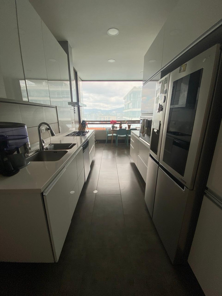 Descubre la elegancia y comodidad en este exclusivo apartamento de 240 metros cuadrados. Con pisos de madera y una iluminación natural que resalta cada espacio, te recibirán 3 habitaciones, 4 baños y una cocina integral equipada con gas natural. Disfruta de la vista exterior desde el balcón, mientras cuentas con cuarto de servicio, estudio y depósito. En un conjunto cerrado con vigilancia privada 24/7, ascensor y parqueadero para visitantes, tendrás acceso a gimnasio, zona infantil y salón comunal. Vive con seguridad y confort en este lugar único.