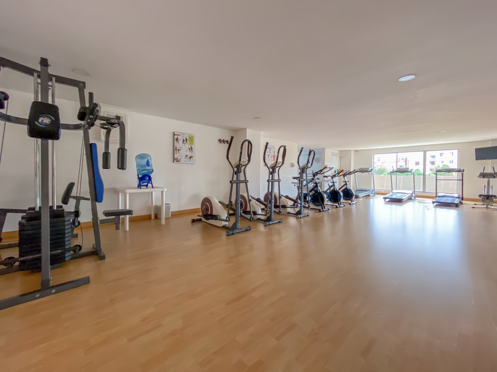 El edificio ofrece vigilancia 24 horas, gimnasio, zona de juegos para niños al aire libre, salón comunal y cancha de squash.
